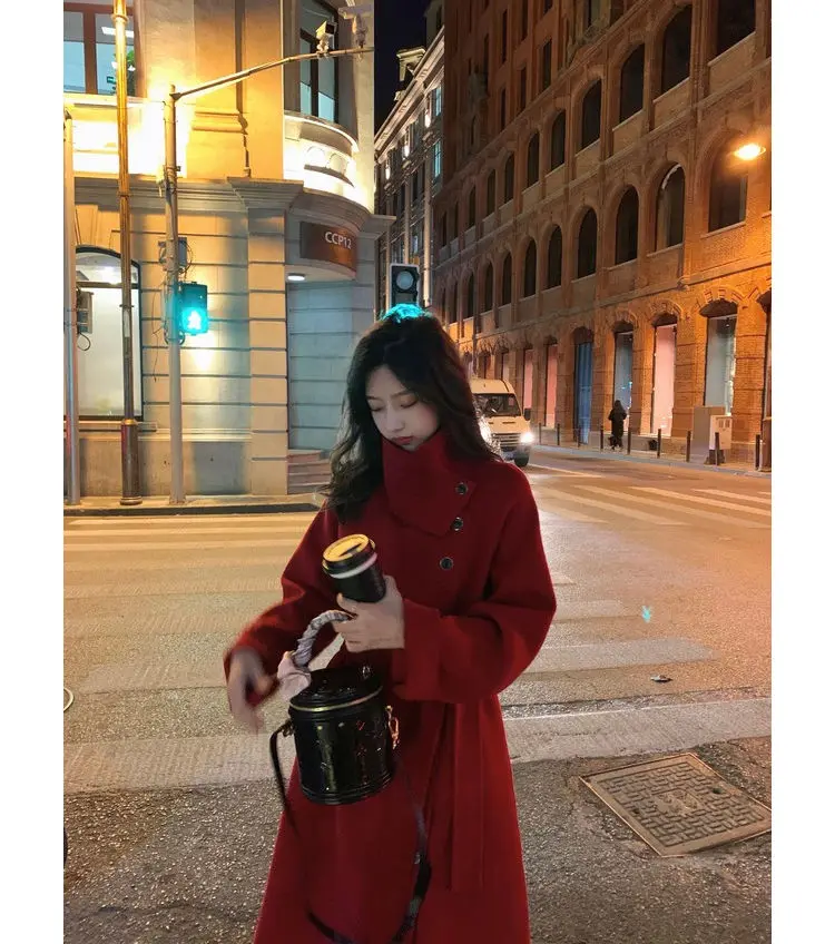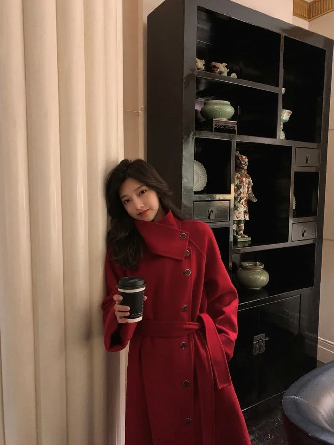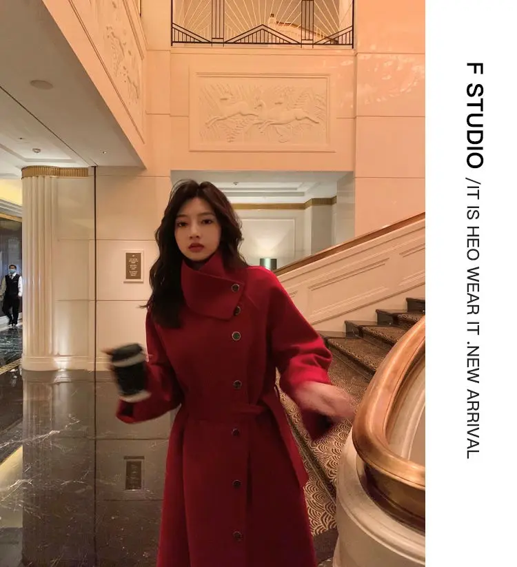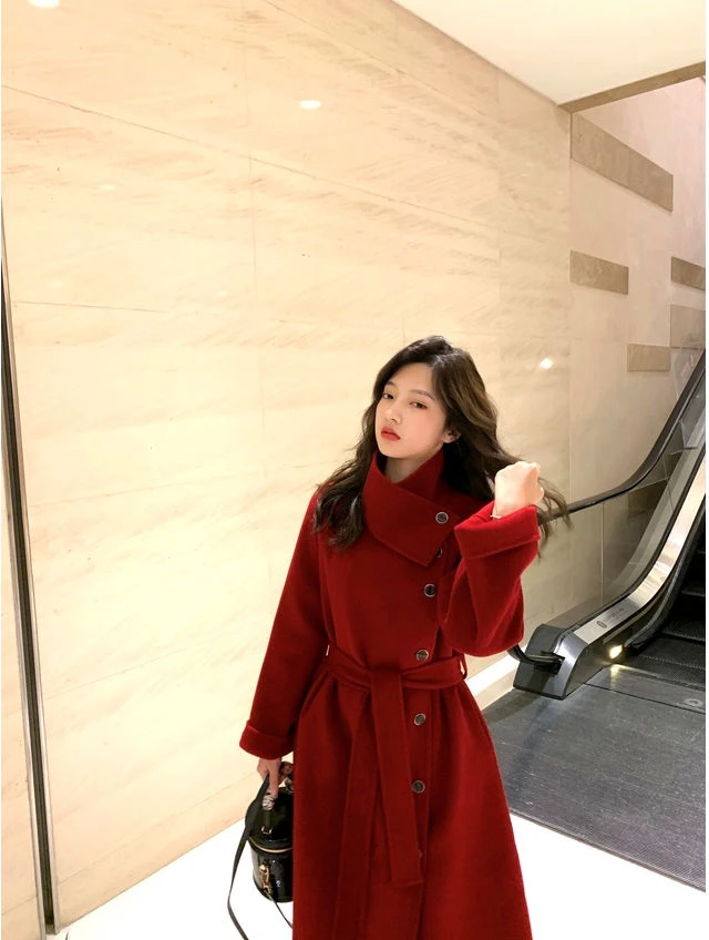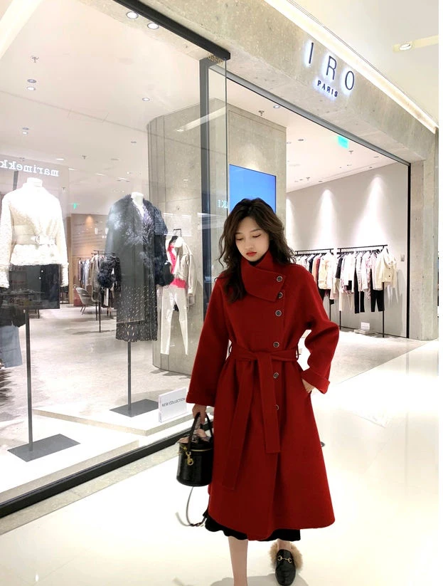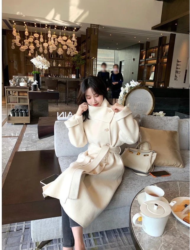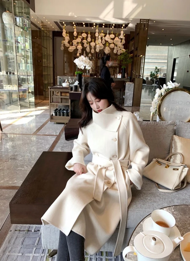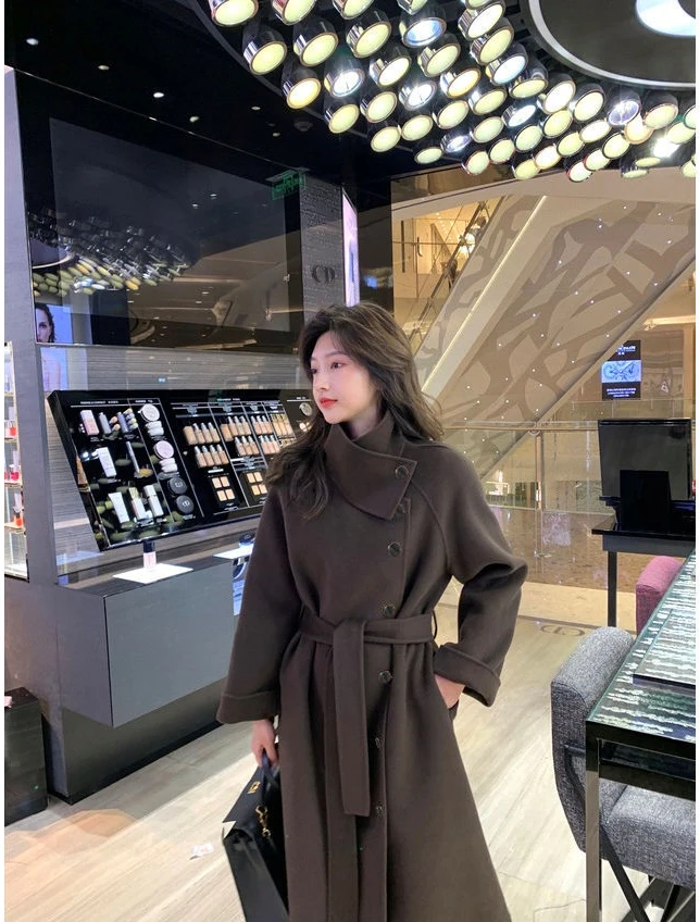 Женское клетчатое пальто из овечьей шерсти с воротником меха ягненка плотное