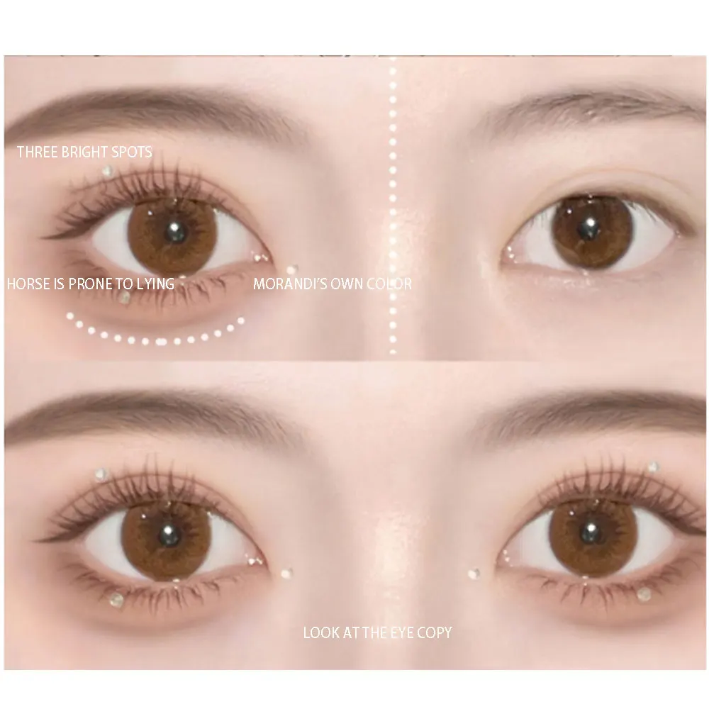 Используйте темные тени для век на нижних веках, чтобы выметать кривизну лежа шелкопряда в качестве грунтовки, А затем используйте Ярко-белый цвет, чтобы осветить весь лежащий Шелкопряд на нижнем век, чтобы увеличить трехмерное ощущение и создать более совершенное трехмерное ощущение и глубокое ощущение;