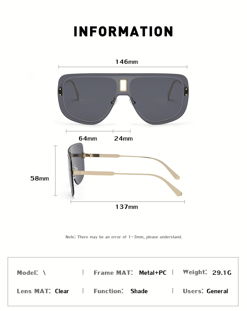 Большие солнцезащитные очки без оправы для женщин 2021 Роскошные брендовые цельные солнцезащитные очки Channel для мужчин квадратные трендовые оттенки большая оправа