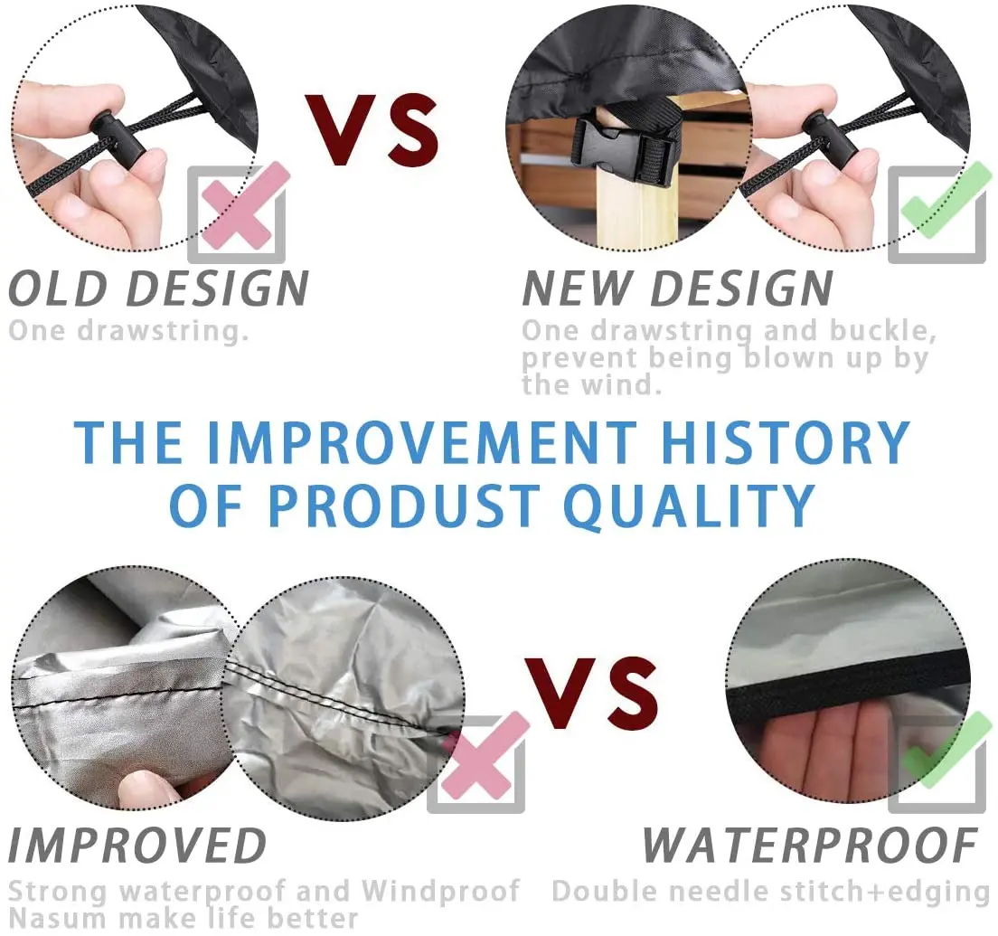 Почему стоит выбрать чехлы для стульев King do way -Лучшая защита вашей уличной мебели: благодаря сверхпрочной 100% 600D Оксфордской ткани, наши чехлы для стульев для патио сделаны для защиты вашей мебели для патио от солнца, грязи, Листьев, дождя, И снег. -Водонепроницаемый Дизайн: наши чехлы для стульев для патио разработаны с водонепроницаемым и PV покрытием на внутренней стороне ткани и добавляют кусок термоуплотняющего клея в шов крышки, чтобы избежать утечки воды в шве, что может предотвратить просачивание воды -Регулируемый шнурок: нижняя часть наших чехлов для стульев на открытом воздухе оснащена регулируемым шнурком, чтобы обеспечить близкое прилегание к вашей уличной мебели и повысить защиту вашей мебели. -Четыре пряжки ремня: нижняя часть чехла для стула с четырьмя пряжками для крепления ног стула, предотвращая сильный ветер от выдувания крышки стула. -Дизайн вентиляционного отверстия: конструкция вентиляционного отверстия для предотвращения заплесневания мебели. -Дизайн ручки: дизайн ручки делает ежедневное использование более удобным, и его легко надевать и снимать чехлы на стулья для мебели. -Высококачественная ткань: наш Чехол для стула изготовлен из 100% ткани Оксфорд 600D, которая долговечна и не выцветает. Легко складывается, когда не используется. Спецификация: 1 шт.: 64*85*120/85 см 91*71*120/85 см Посылка включает в себя: |