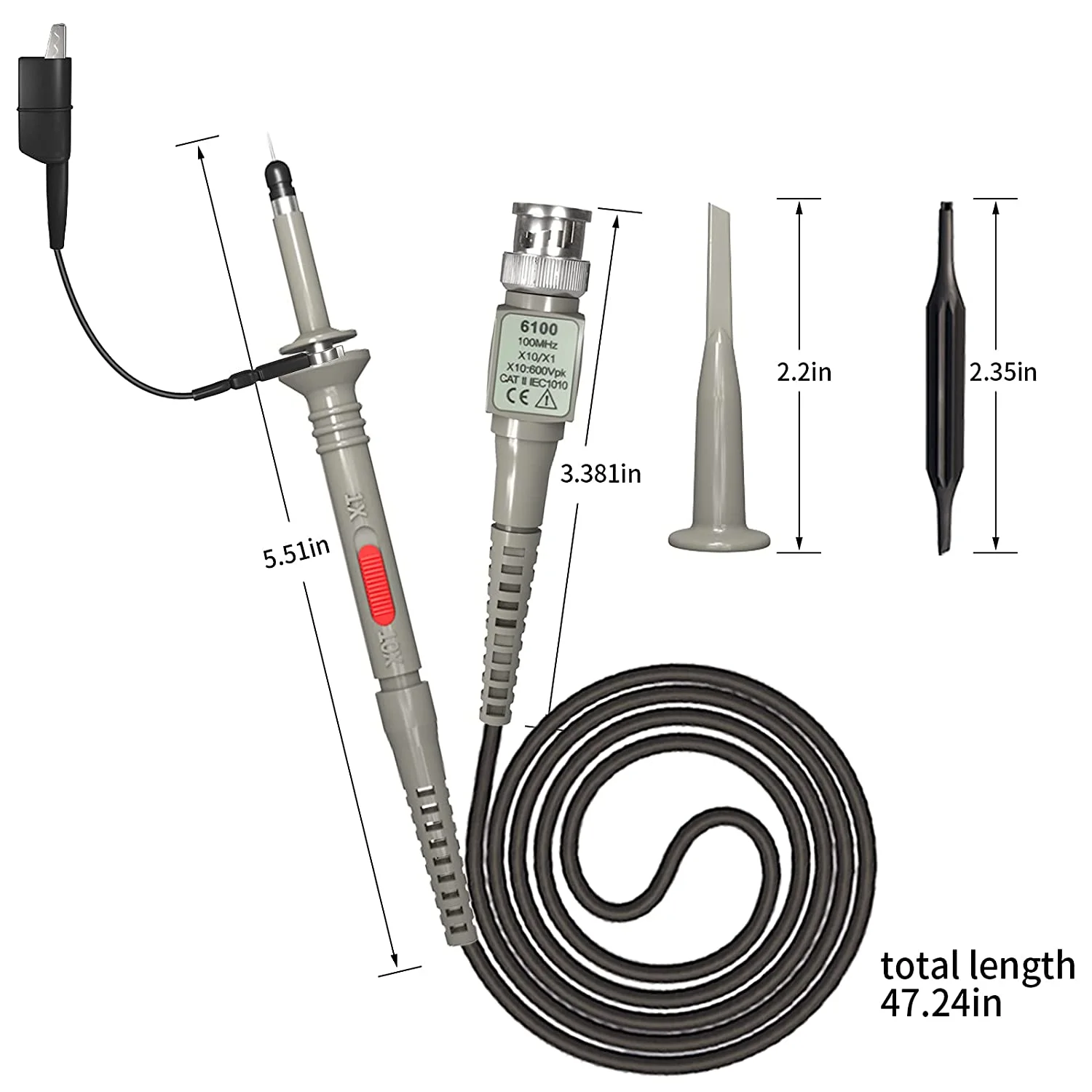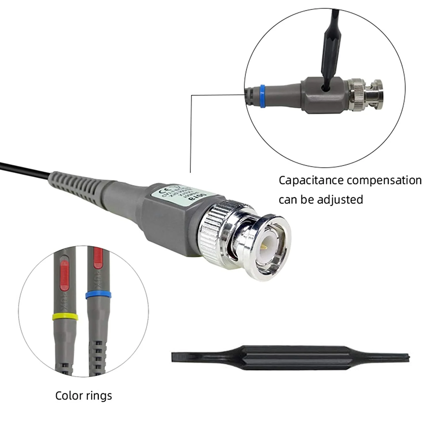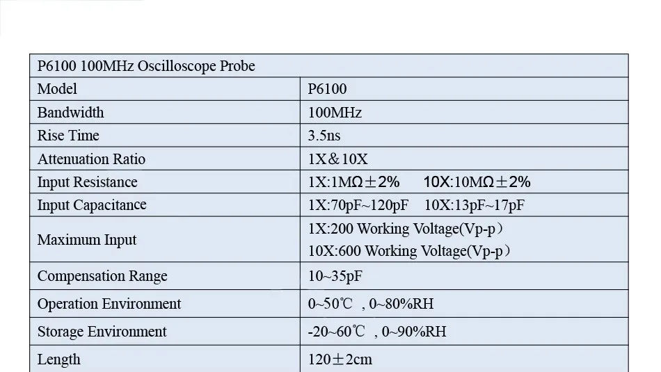 · Регулируемый зонд осциллографа, который совместим с интерфейсом BNC, цифровыми осциллографами, виртуальными осциллографами, ручными осциллографами и т. д.