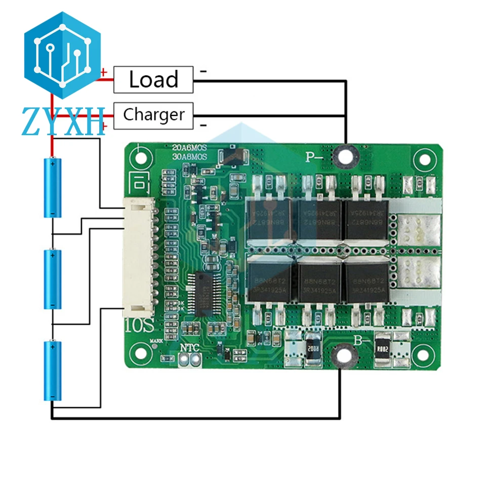 Общий порт BMS 10S 36V 20A с балансом