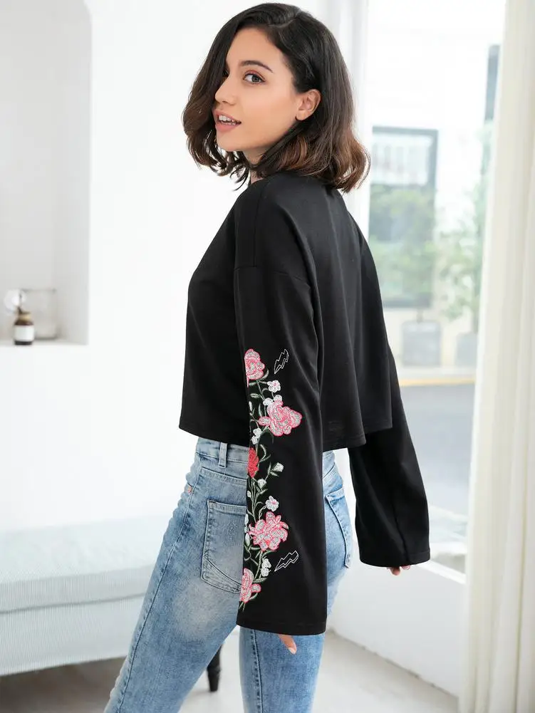Черная Толстовка, укороченная толстовка, Короткая Толстовка, пуловер для женщин, женская толстовка