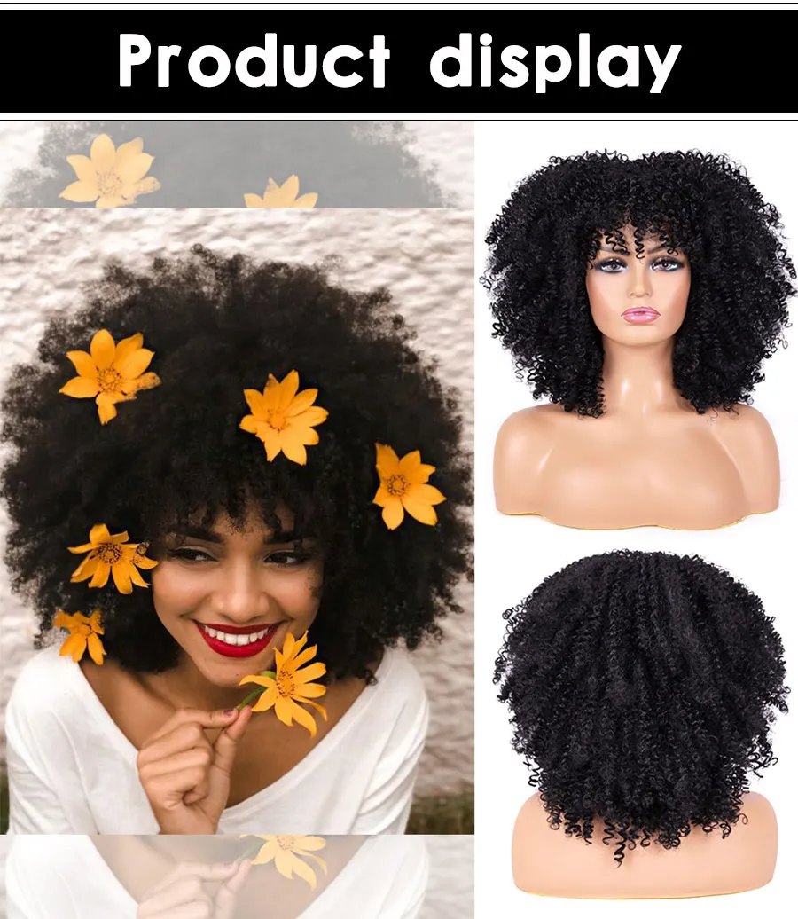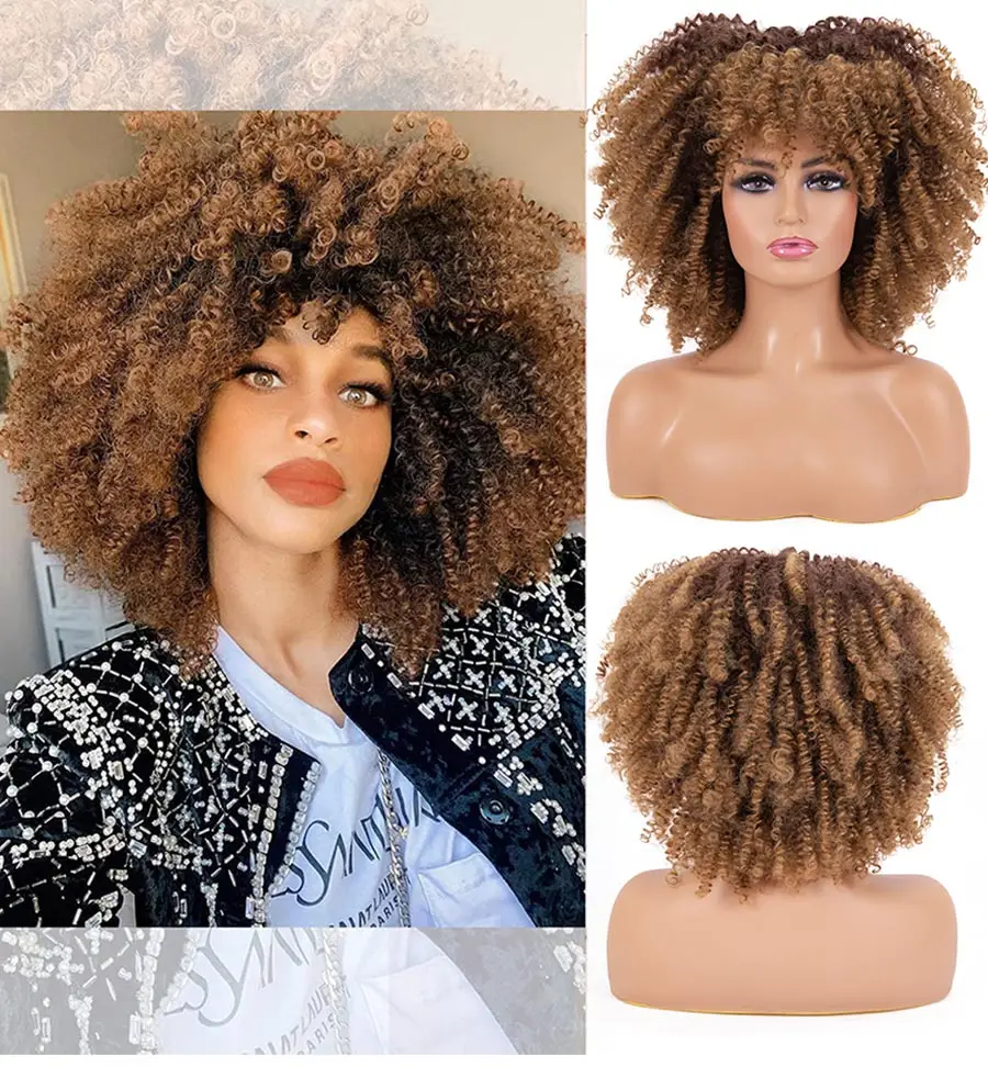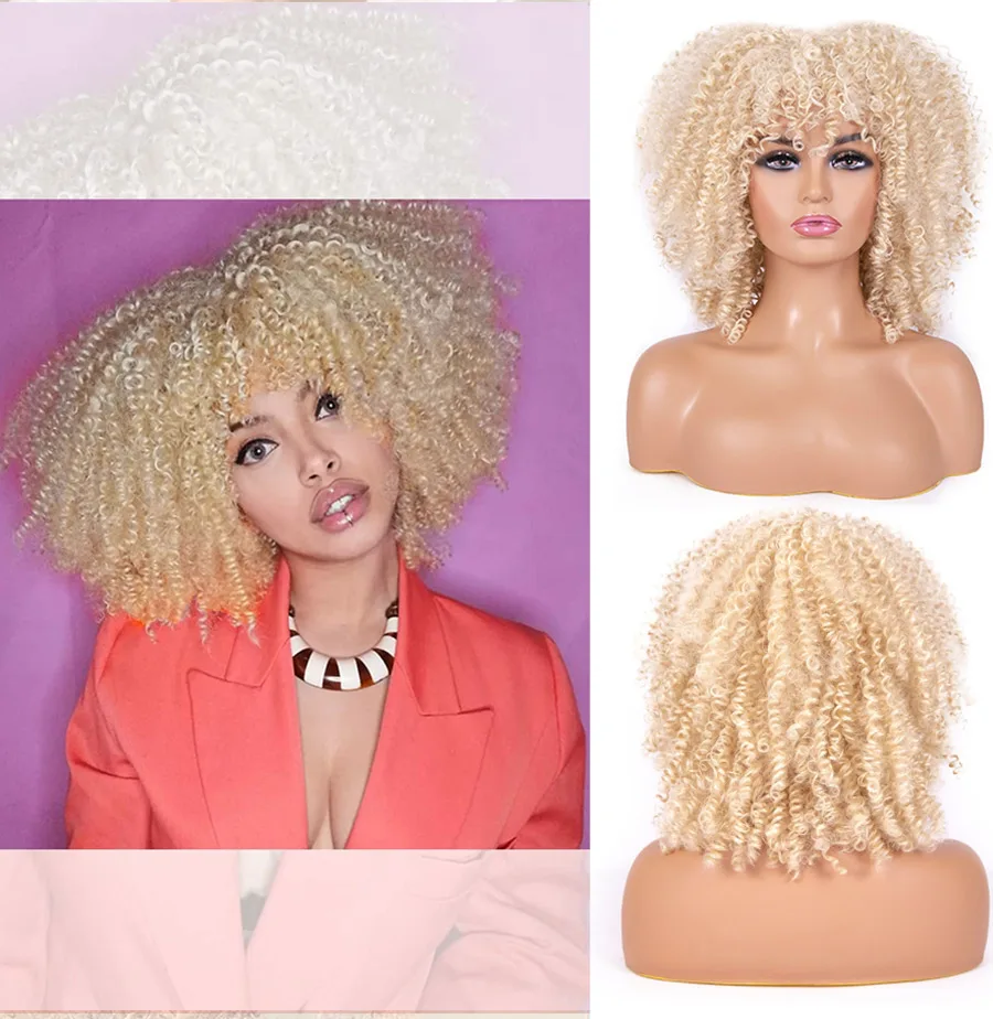 1B Ombre Gray 4-30 27-33 Red Soft Wigs Short Curly Wig With Bangs 14 inches Afro Kinky Synthetic Hair for Women | Шиньоны и парики