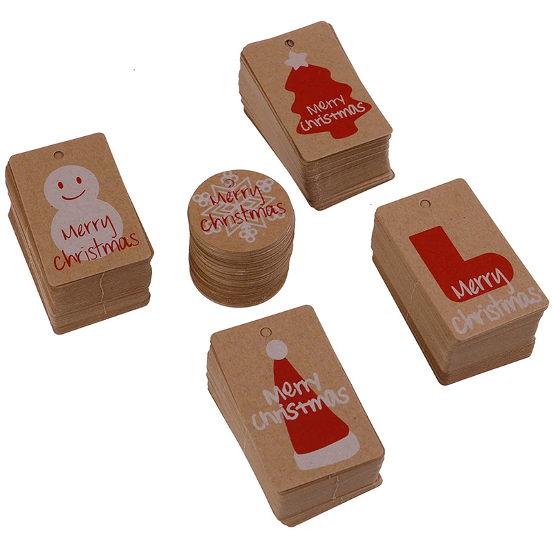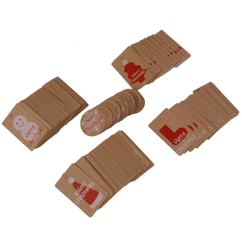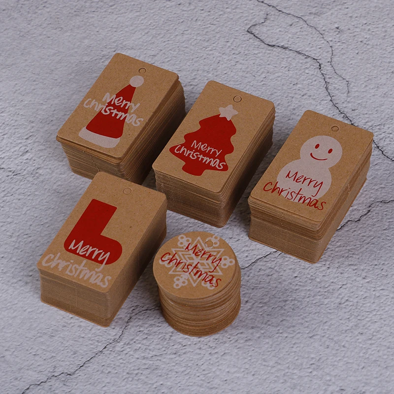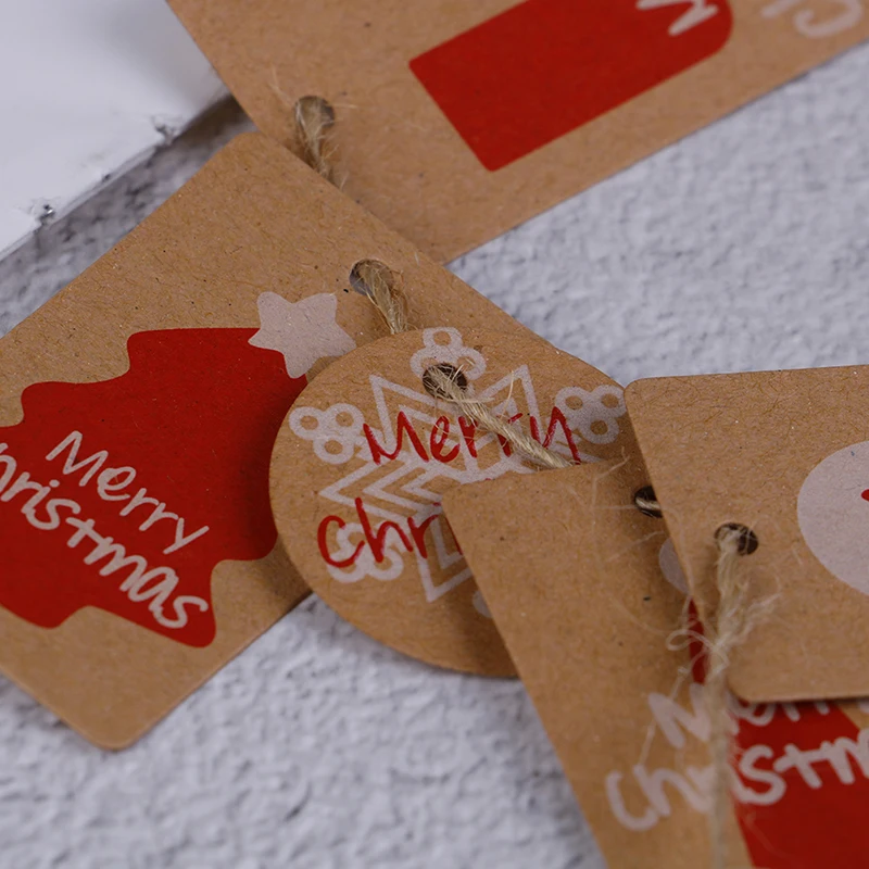 Характеристики: 100 шт крафт-бумаги бирки для рождественских подарков с рождественскими украшениями с любовными тегами с джутовым шпагатом для DIY ценников одежды