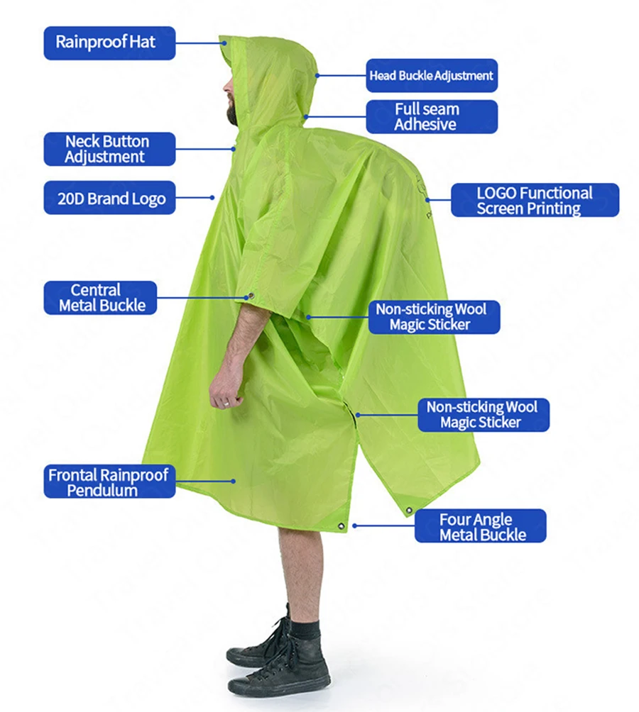 Может использоваться в качестве плаща, коврика и навеса