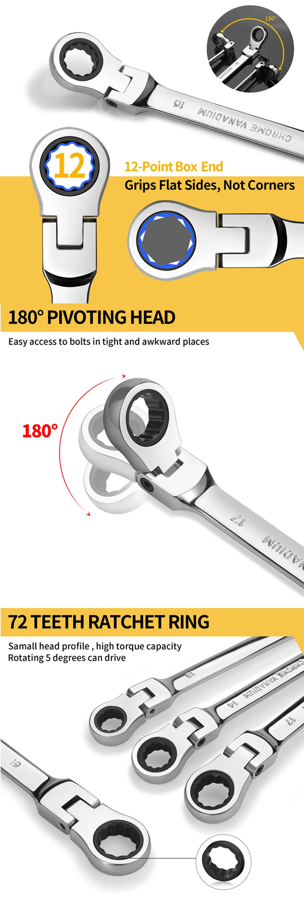 72 зуб бокс с храповым механизмом конец требует Минимальный 5 ° для перемещения крепежа против 30 ° для стандартных гаечных ключей