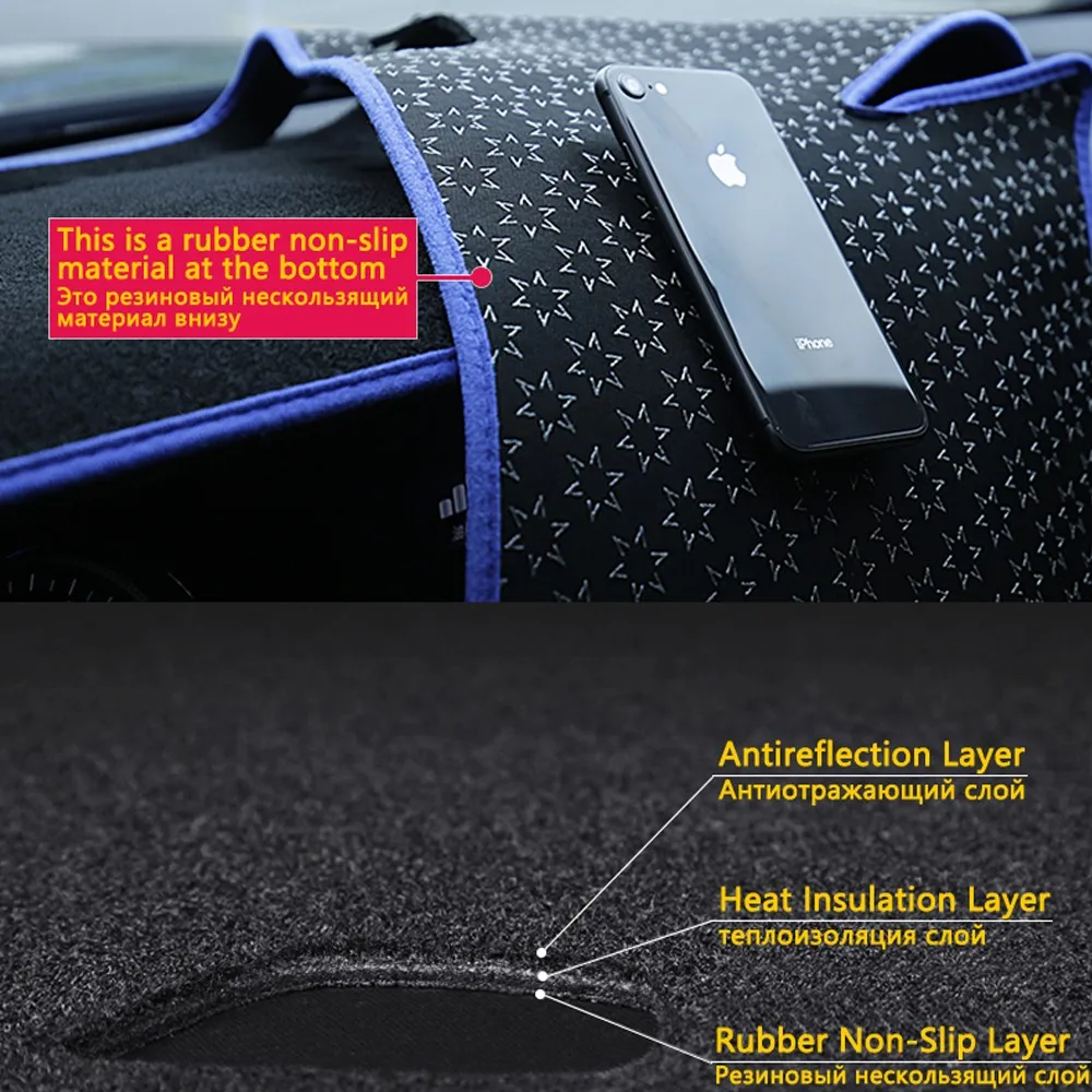 Этот товар представляет собой коврик для приборной панели, который уникален тем, что имеет нескользящую заднюю часть. Усовершенствованная ткань не только уменьшает и поглощает солнечные отражения, но и идеально подходит для украшения интерьера