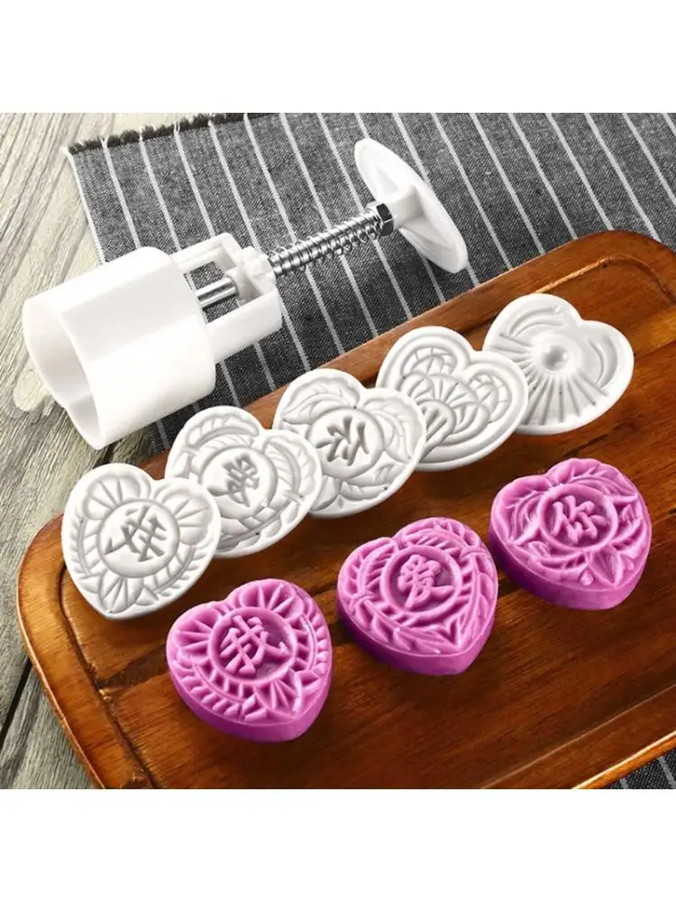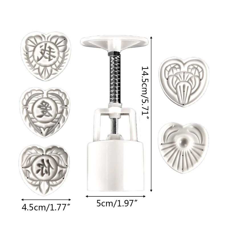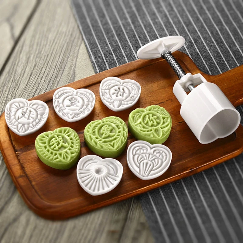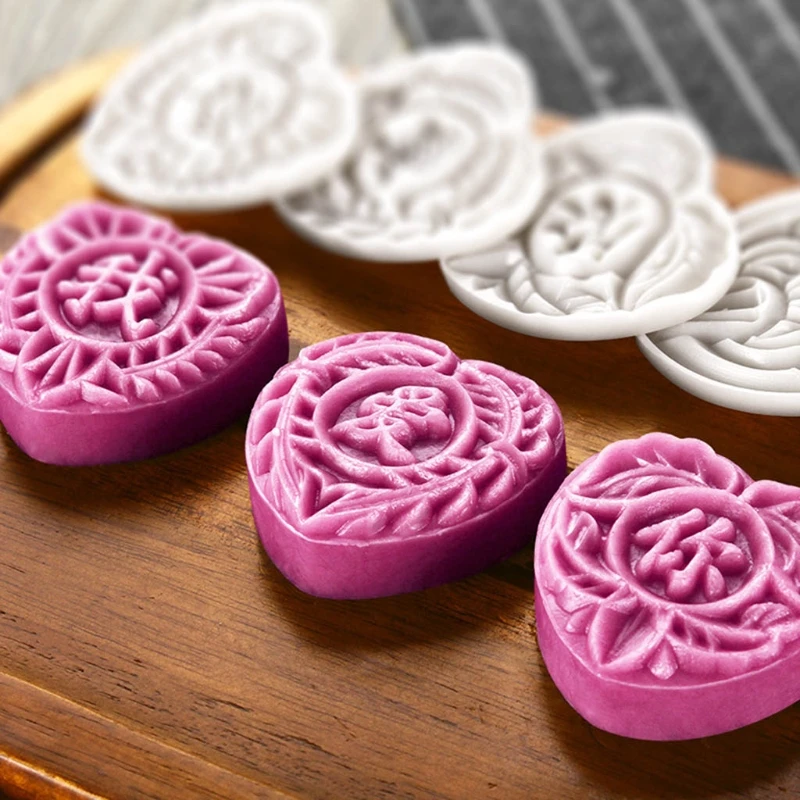Несколько узоров: каждый тип формы для лунного торта имеет несколько уникальных цветочных штампов, которые обеспечивают плавные линии без заусенцев на краю штампа печенья.