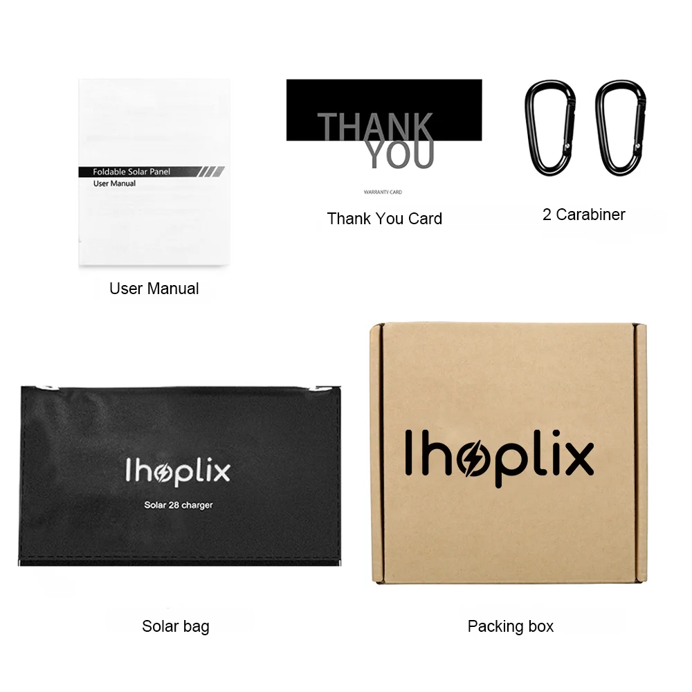 Next time you go on an outdoor adventure, drop the IHOPLIX 28W portable charger in your backpack, and juice up your devices batteries on the go and hassle-free. For practicability 2 carabiners are provided, which let you easily attach this unit to backpacks, trees, or tents when outdoors. Also included 2 stands, on which you can rest the solar charger, help you find the perfect angle to absorb the maximum sun lights for a faster recharge time.