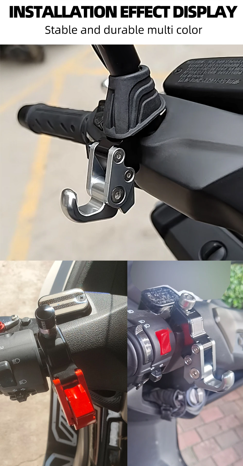 ▶Примечание: если диаметр винта в нижней части вашего мотоцикла зеркалом заднего вида стержень составляет менее 10,5 мм, но, диаметр мембранного указателся вашего мотоцикла зеркалом заднего вида стержень больше, чем 10,5 мм, затем вы также можете установить крючок продукта на винт в нижней части стержня зеркала заднего вида вашего мотоцикла.