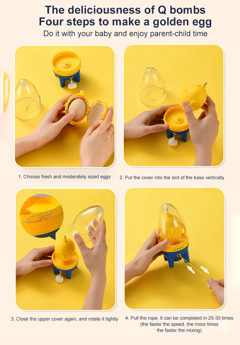 3. Придирчивый Пожиратель Терминатор: дети придирчивые пожиратели и не любят есть яичные белки/яичные желтки? Используйте этот Забавный инструмент, чтобы равномерно встряхнуть яичный белок и яичный желток в яичной скорлупе. После того, как яйцо будет приготовлено, оно станет золотым яйцом со смесью желтка и яичного белка. Операция проста и легче поглощать питательные вещества.