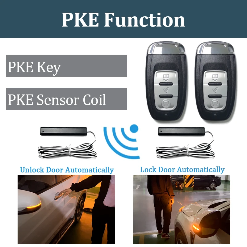 2.PKE бесключевая запись, функция автоматического переключателя датчика блокировки, рядом с автомобилем 2 метра, автоматический датчик разблокировки.