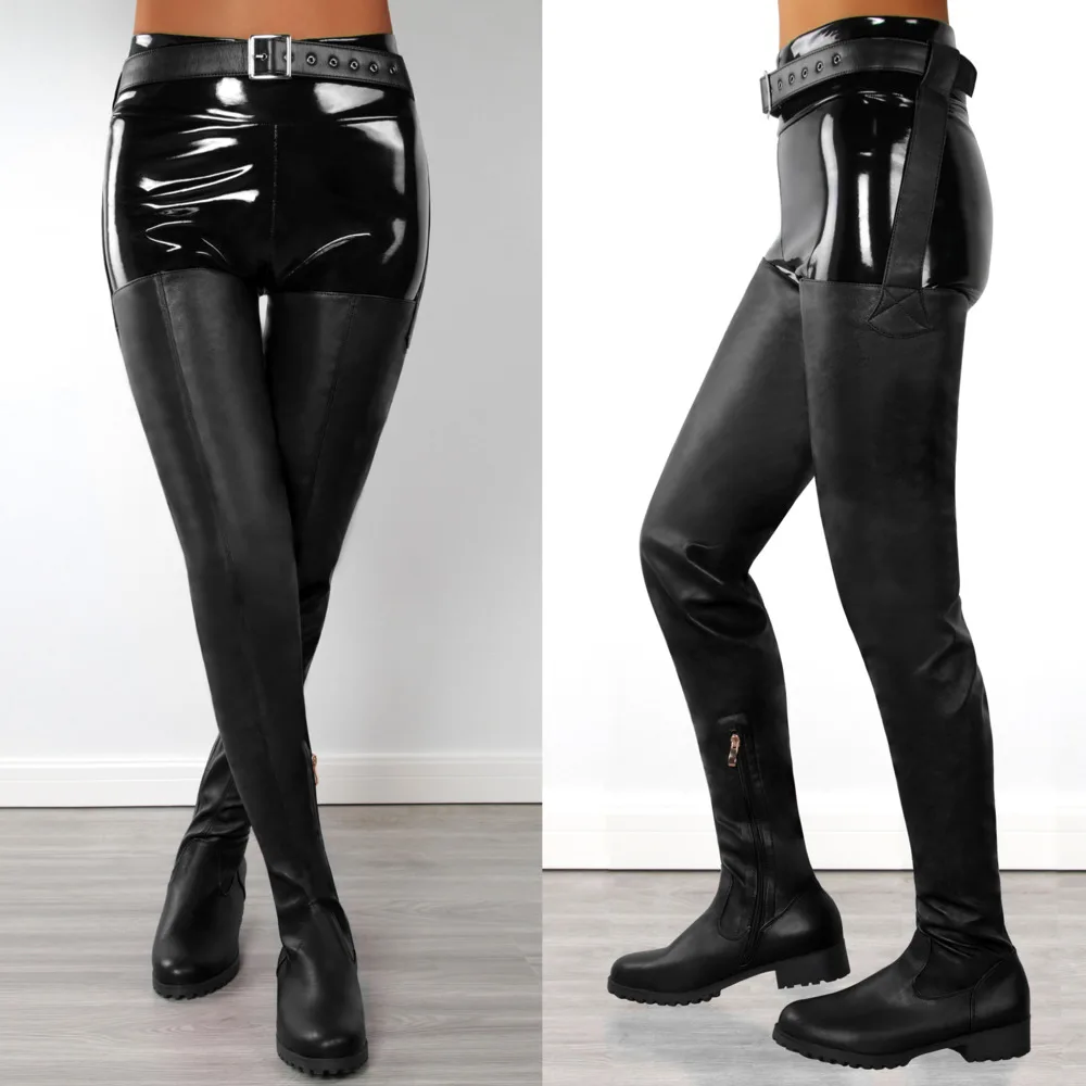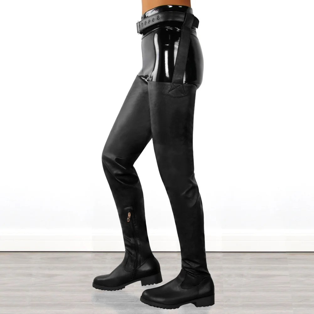 Женские сапоги выше колена ASILETOWinter из натурального страусиного меха на плоской