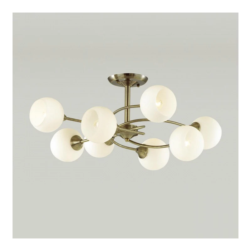 Люстра на штанге от компании LUMION является потолочным световым прибором и предназначена для помещений, оформленных в стиле модерн. Изделие имеет следующие размеры: высота - 310мм, диаметр - 710мм.Имеется возможность подключения диммера, если установить лампу накаливания. Цвет плафонов и подвесок - белый. Цвет арматуры - бронза античная. Материал арматуры - металл.