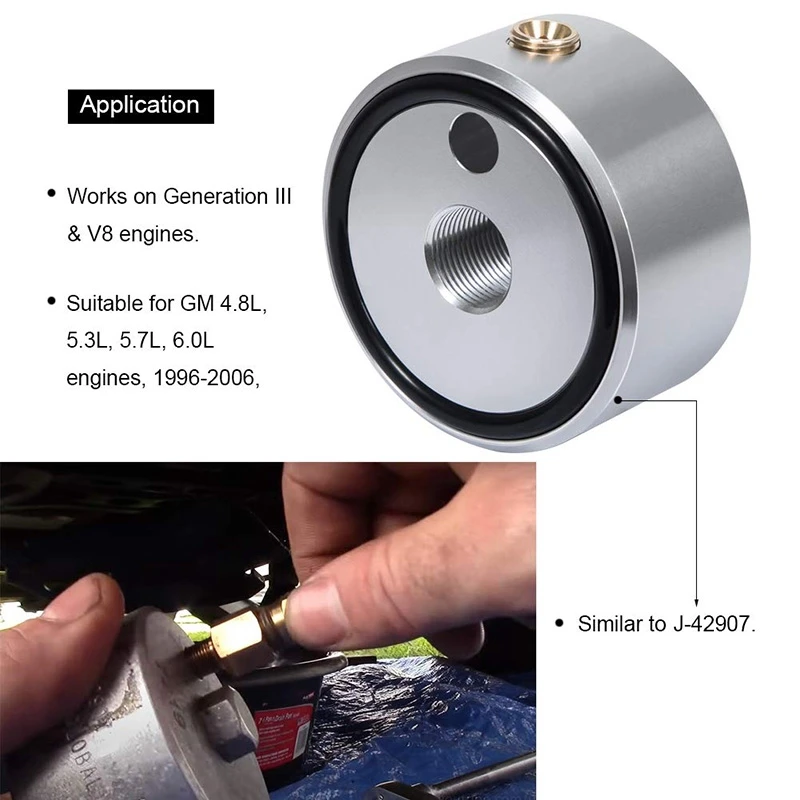 Преимущества: ① 7219 адаптер давления масла позволяет измерять давление масла двигателя. ② Адаптер манометра масла EN-47971 заменяет установку роторного масляного фильтра и позволяет подключить существующий манометр масла J-21867 для диагностики системы моторного масла. Перед запуском сменного двигателя его также можно установить на двигатель для предварительной смазки.
