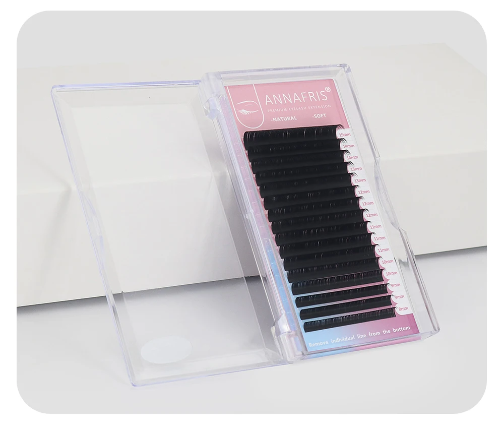 1: ресницы ANNAFRIS импортируются из Кореи, специально исследованные материалы из синтетического ПБТ-волокна: светильник, натуральный и мягкий.