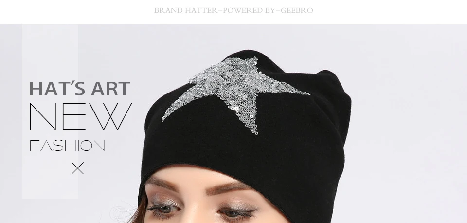 Название продукта:Geebro новые женские теплые однотонные вязаные шапки со звездами для девочек, зимние мягкие головные уборы, женские осенние громоздкие мешковатые шапки Skullies