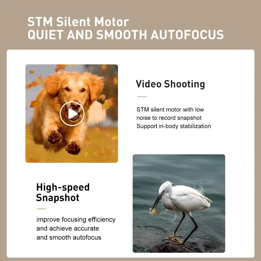 Support Auto Focus,Electronic Aperture Noiseless STM focus motor Full Frame,85mm focal length,F1.8 large aperture 10 elements in 7 groups,including 1 ED lens and 4 short wave length and high transparent lens HD Nano multilayer coating Precision metal structureture