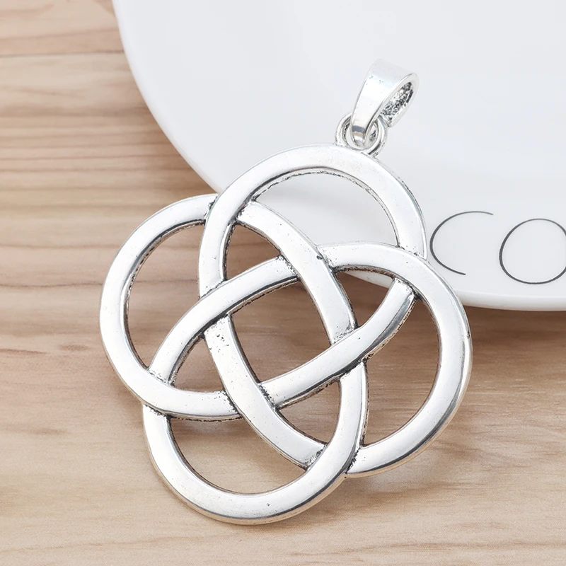 2 шт., антикварные серебряные тона, большие китайские Подвески с узлом, подвески для ожерелья, ювелирные изделия, находки 73x66мм