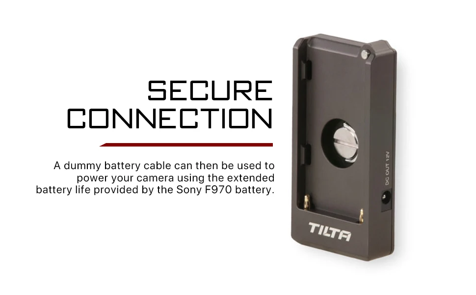 Фиктивный аккумуляторный кабель можно использовать для питания вашей камеры, используя увеличенный срок службы батареи, обеспечиваемый батареей Sony F970.