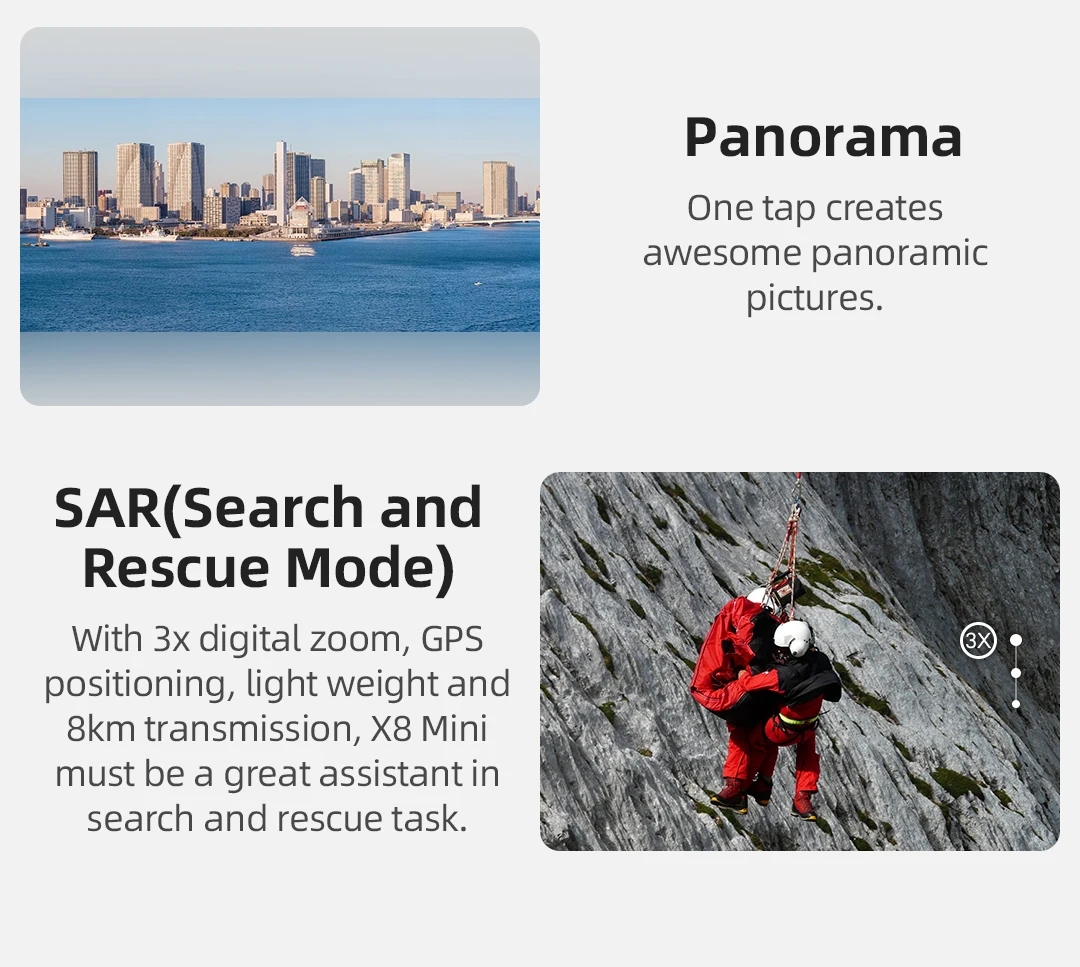 10. Ночная съемка: работает от профессионального алгоритма AI Hisilicon для снижения уровня шума, X8 Mini сохраняет яркие детали за пределами того, что может быть обнаружено глазами. Просто вообразите, что ваш Дрон будет исследовать красочные ночные сцены!