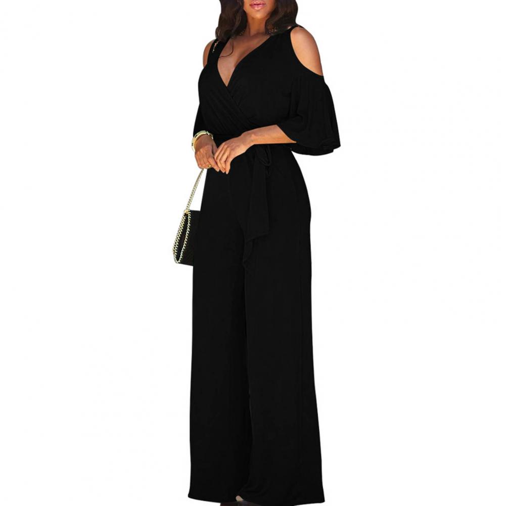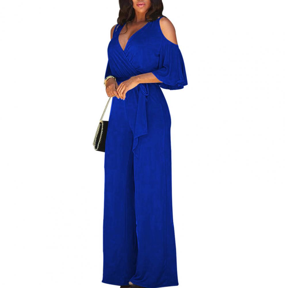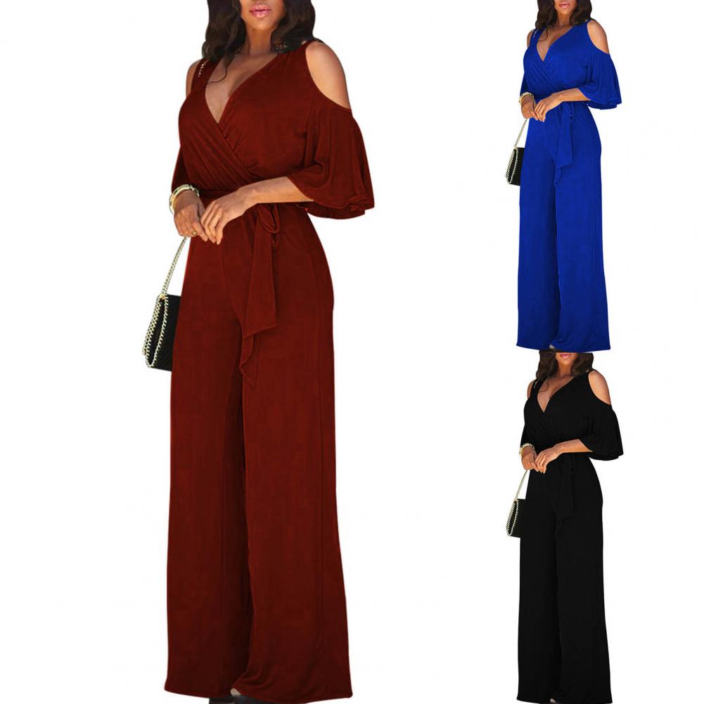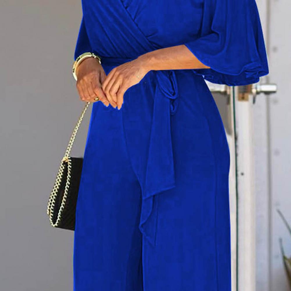 Женский привлекательный однотонный комбинезон с коротким рукавом и v-образным вырезом, темпераментный женский комбинезон, однотонный для свадьбы