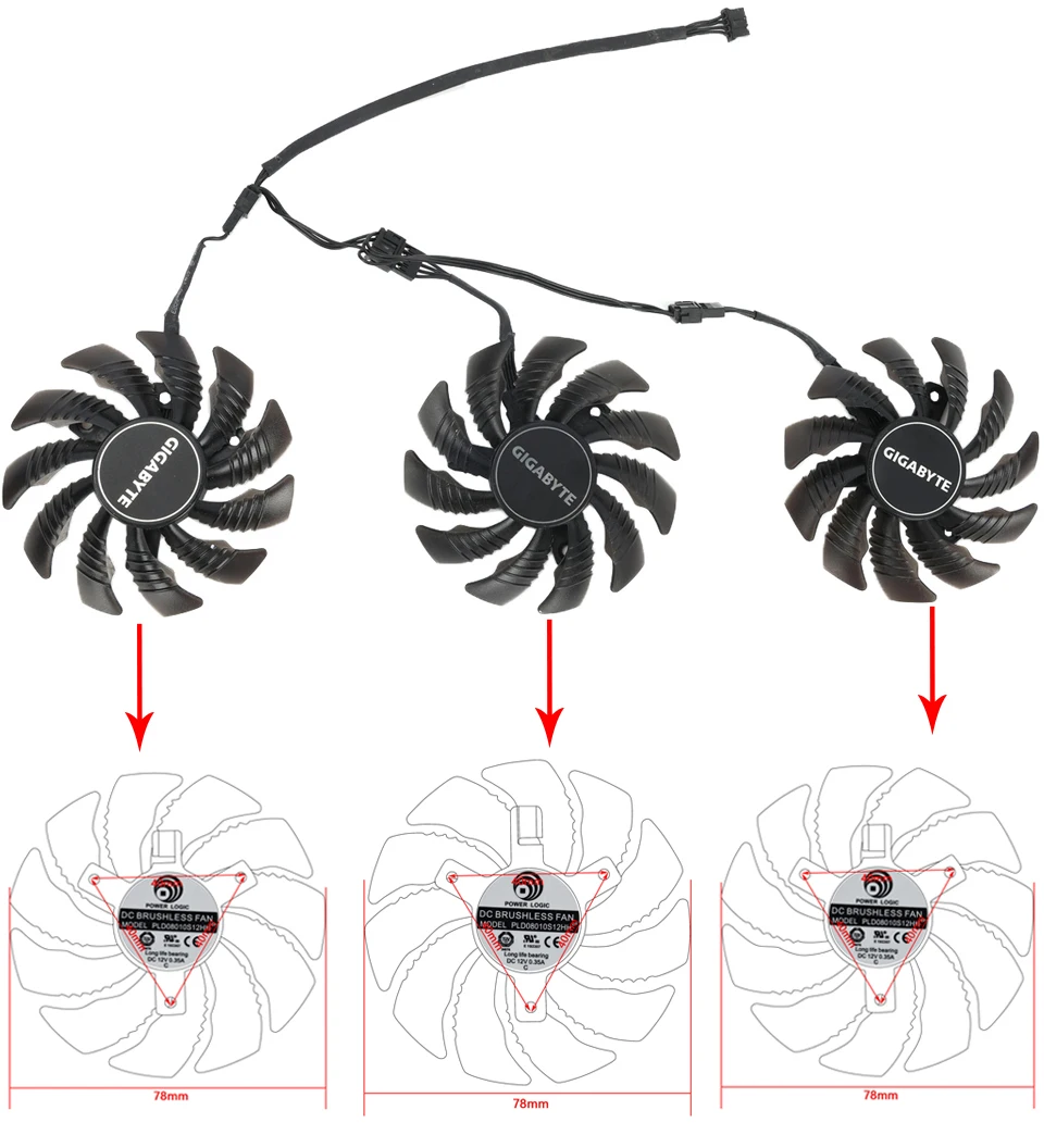 3. Пожалуйста, измерьте размер вентилятора и расстояние монтажных отверстий и убедитесь, что он подойдет к вашей видеокарте.