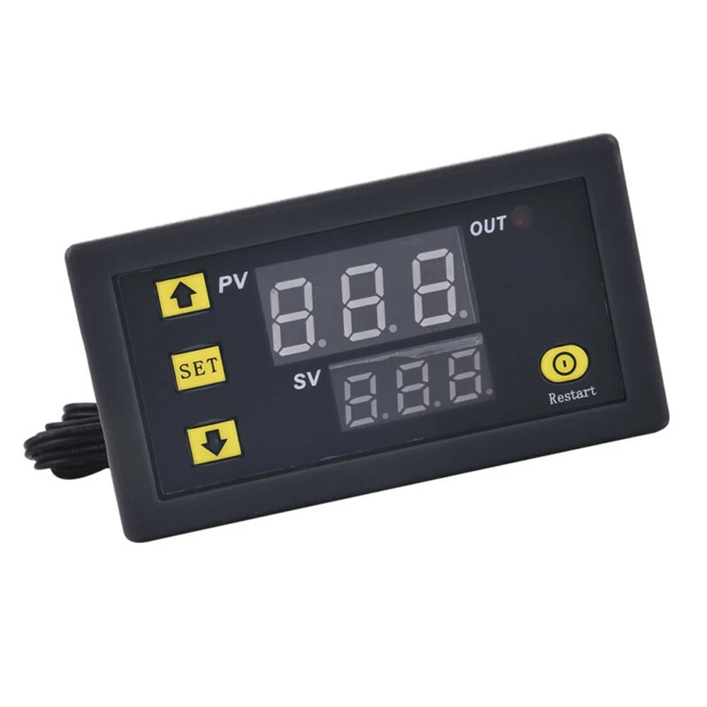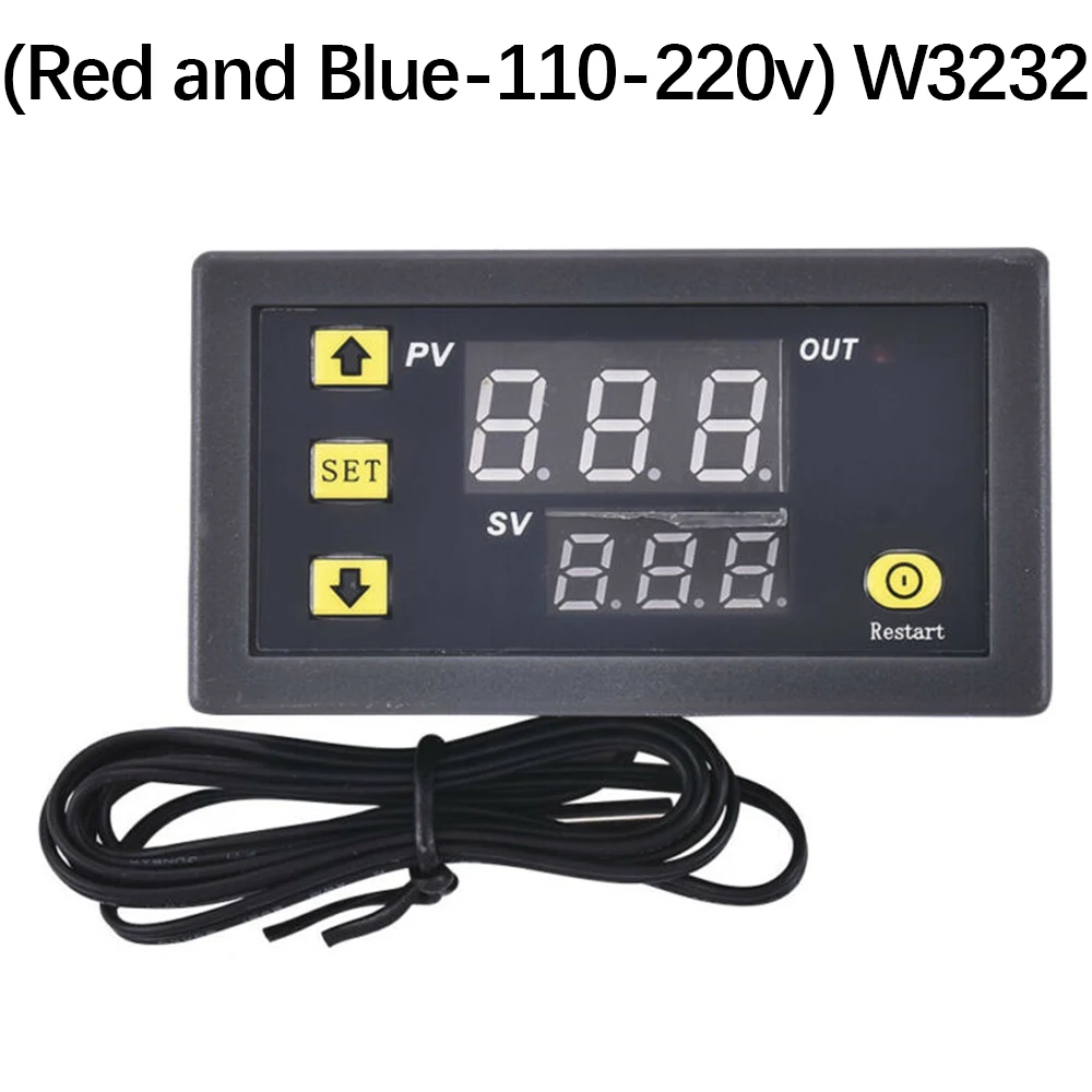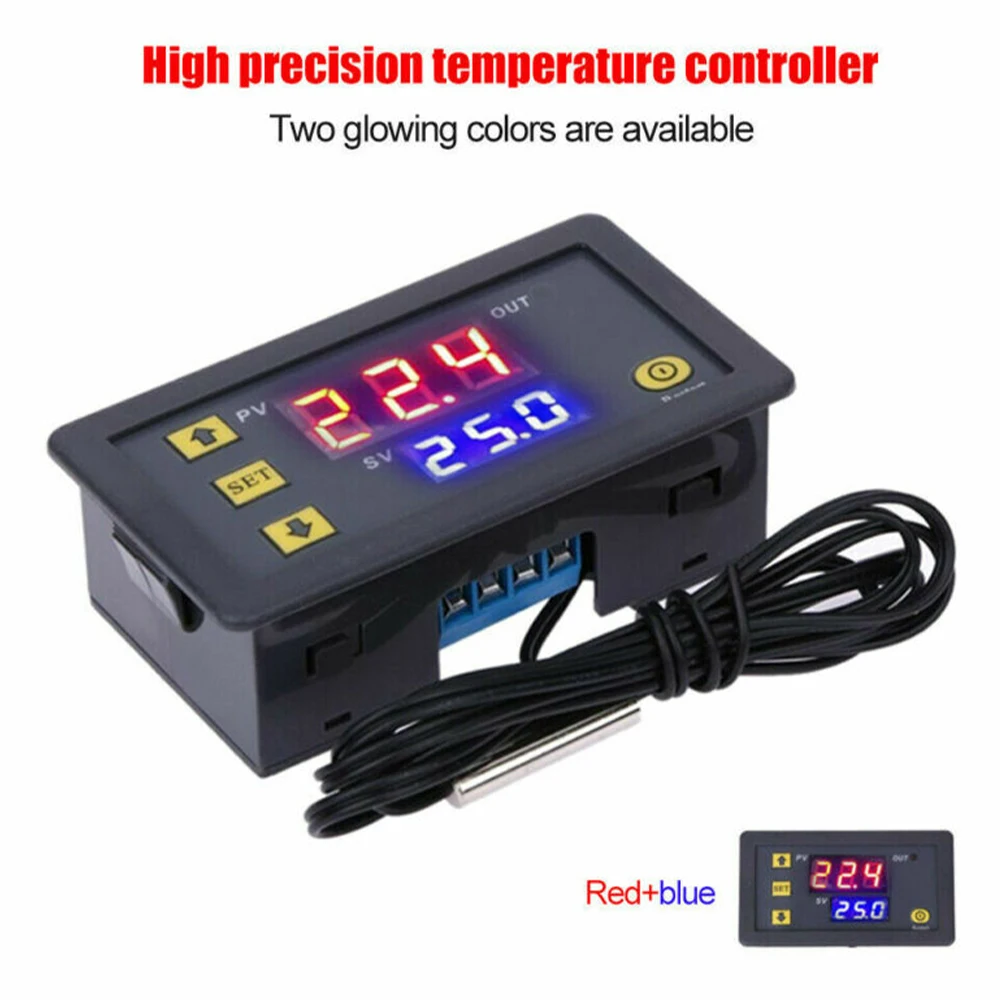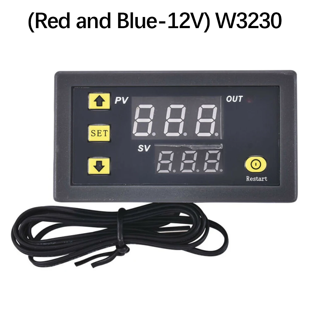 Описание:Мини-регулятор температуры может как сделать Отопление и охлаждение сжатым, Диапазон измерения температуры: -50 °C-110 °C.Красный + синий дисплей 2 цветов позволяет легко различать и больше удобства для лучшей читаемости.Автоматическое охлаждение или нагревание постоянной температуры.Высокотемпературная сигнализация, когда температура достигает установленной температуры, контроллер будет оповещать.Релейный выход. Все параметры настройки могут быть сохранены после короткого замыкания.Широко используется для бытовой морозильной камеры, резервуара для воды, холодильника, промышленного охладителя, парохода и других небольших температурных систем. Технические характеристики W3230:Материал: АБС-пластикЦвет: черныйИсточник питания: 12 В постоянного тока/110 В переменного тока-220 ВДиапазон контроля температуры:-55 ℃-120 ℃Коэффициент разрешения: 0,1 °C(-9,9-99,9); 1 °C (другой диапазон)Цвет отображения: красный/синийТочность измерения: ± 0,1 °CТочность управления: 0,1 °CДатчик: NTC10K водонепроницаемый датчикВыход: контакт реле Ёмкость 20A 12V / 10A 220VЭкологические требования: -10-60 °C, влажность 20%-85% RHС 100 см NTC датчик температуры для контроля температуры 12V/220V (опционально)Размер: 79 мм * 43 мм * 26 ммРазмер резки: 73 мм * 39 ммПровод датчика: 1 метрДругие: регулятор температуры, цифровой датчик температуры, контроллер термостата, цифровой контроллер термостата, контроллер температуры 110 В