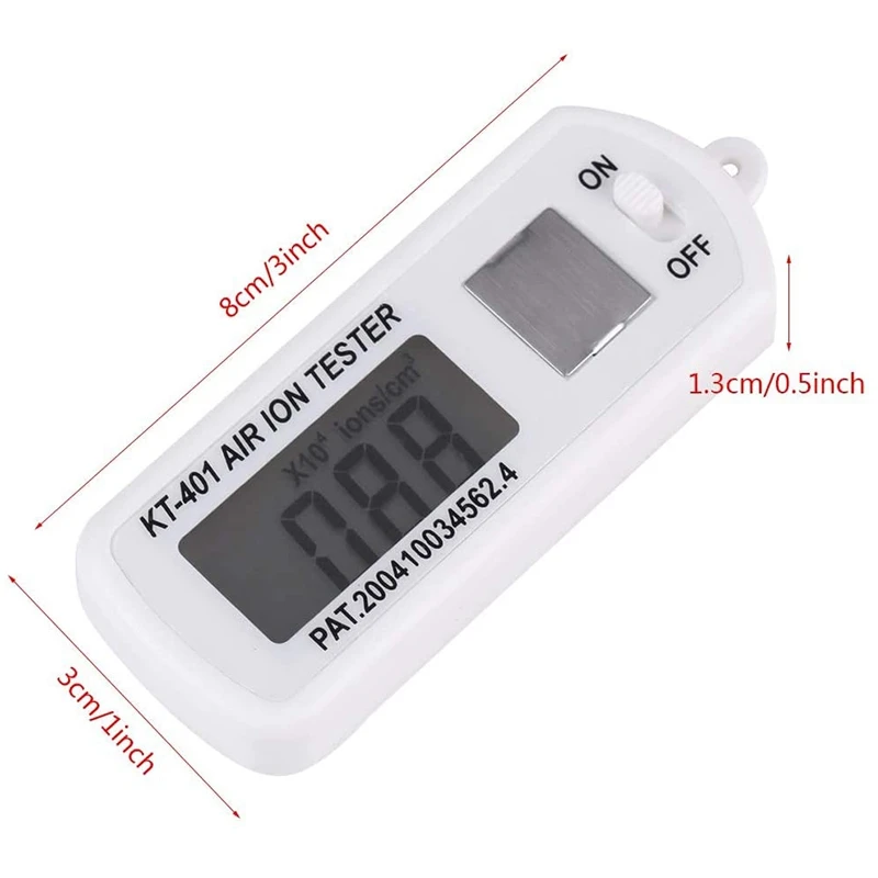 2. Держите большой палец в контакте с квадратным металлическим листом передней панели. Металлический лист на задней стороне проходит испытания на генератор отрицательных ионов воздуха. Чем ближе расстояние между большим пальцем и воздушным отрицательным ионным генератором, тем выше степень тестера, и, наоборот, чем меньше степень тестера. Для обеспечения точности результатов измерений, пожалуйста, держите тестер на соответствующем расстоянии от воздушного отрицательного ионного генератора для проверки.