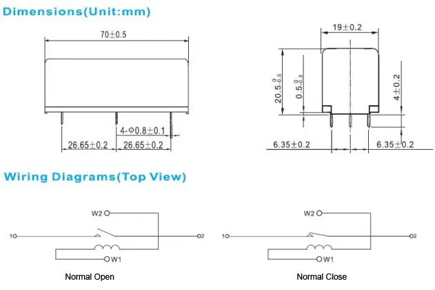 1,型号Номер детали: CRSTHV 2,线圈额定电压Номинальное напряжение катушки (В):DC:12,24 3,接触形式Контактная Форма: A: Нормальный открытый, B: Нормальный закрытый 4,端脚形式Тип Теминал:无NIL: Тип печатной платы, W: печатная плата + провод |