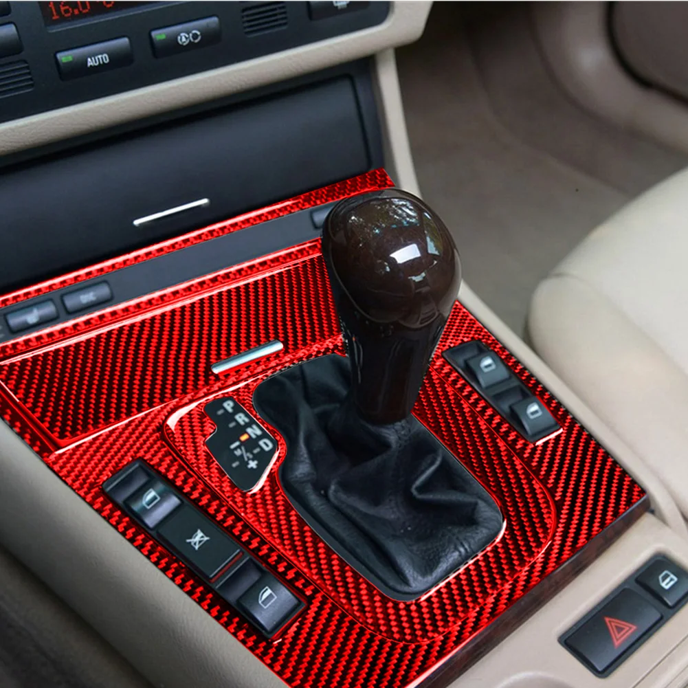 (Left-hand drive) 4pcs Carbon Fiber Gear Shift Box Panel & Ashtray Sticker Cover Trim For BMW E46 98-05 Auto Accessories