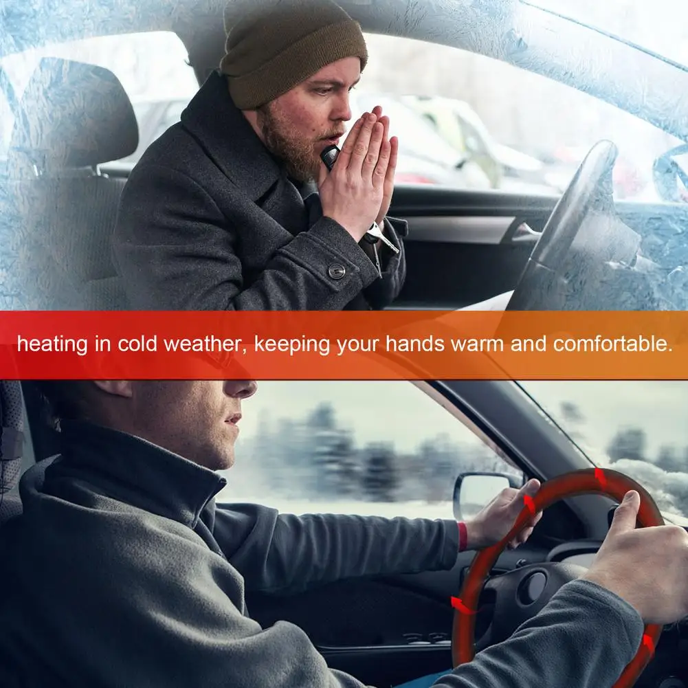 Зимнее нагревательное покрытие рулевого колеса, протектор рулевого колеса 12 В, Быстрое нагревание, грелка для рук, чехол для большинства автомобилей, грузовиков, внедорожниковХарактеристики: