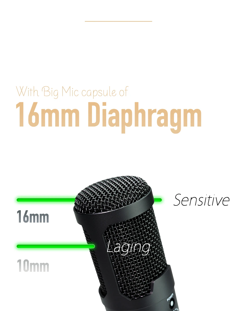 2. Направление в форме сердца: сВ форме сердца, вы можете запечатлеть четкий и гладкий голос перед микрофоном. Профессиональная обработка чипов качества звука встроена, и ненужные экологические шумы подавляются. Ваш голос будет истинным и чистым, как настоящий голос.