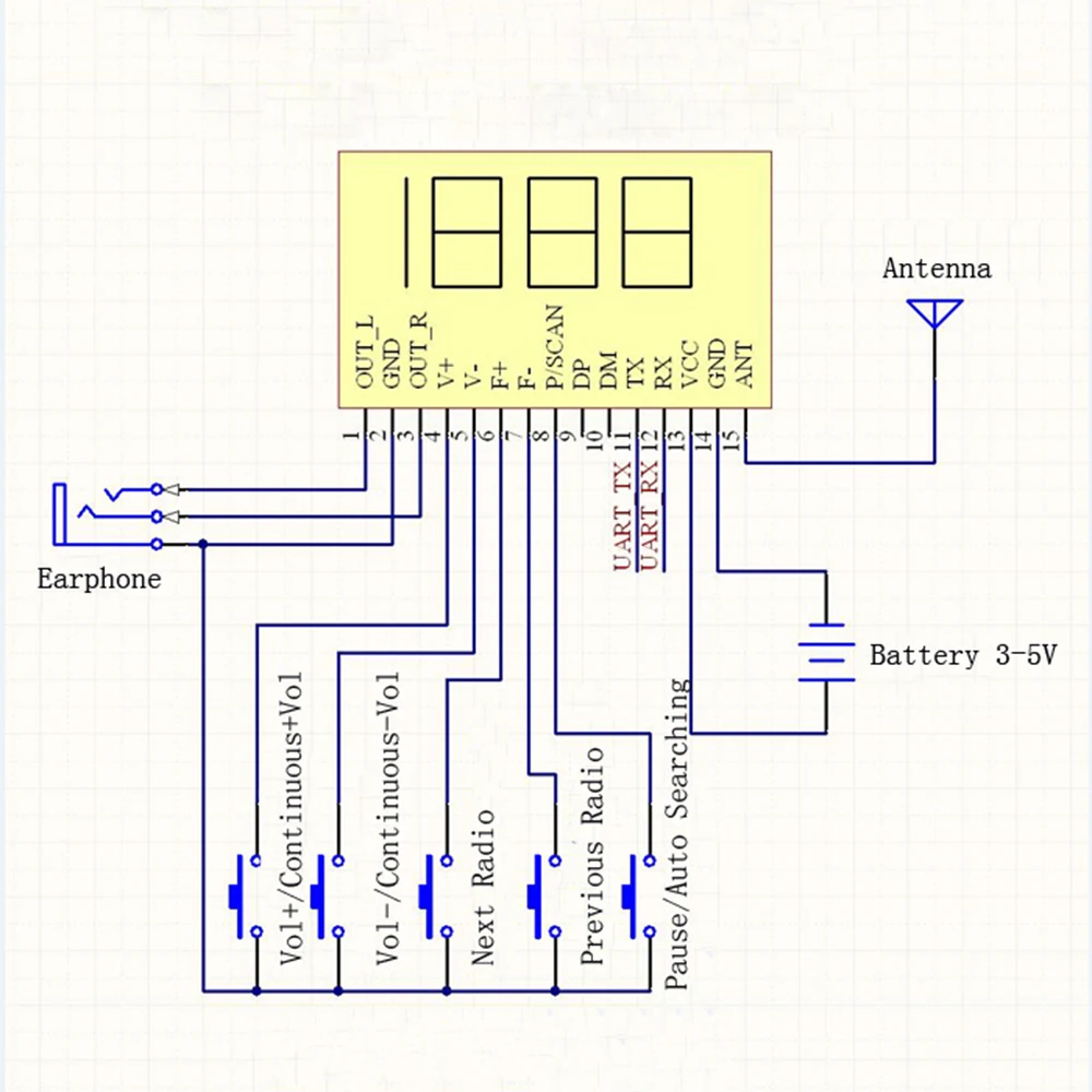 3. Диапазон приема частот: 87,0 МГц-108,0 МГц