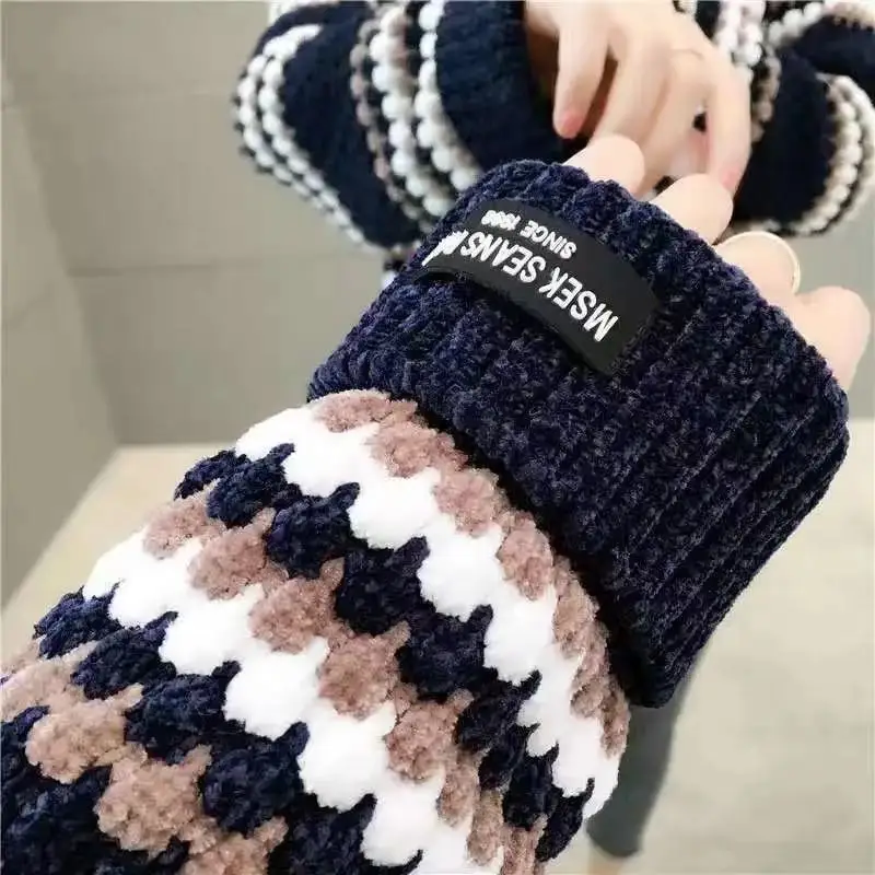Однотонные укороченные полосатые синие футболки с круглым вырезом пуловер