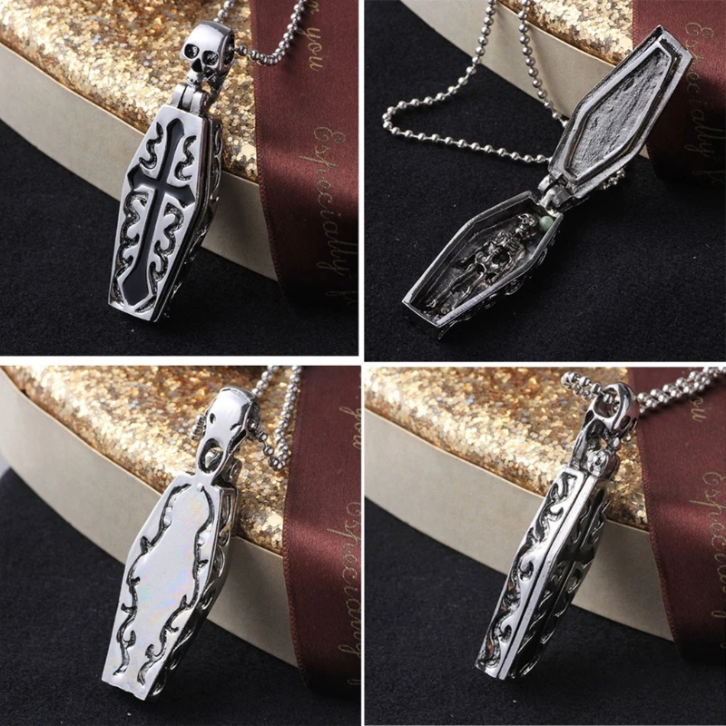 85LB Хэллоуин вампир гроб шкатулка крест череп ожерелье из нержавеющей стали Готический стимпанк ювелирные изделия подарок для мужчин мальчиков взрослых
