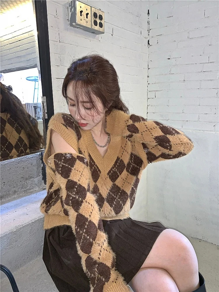 Свитер Женский вязаный акриловый длинный тонкий с V-образным вырезом и блестками