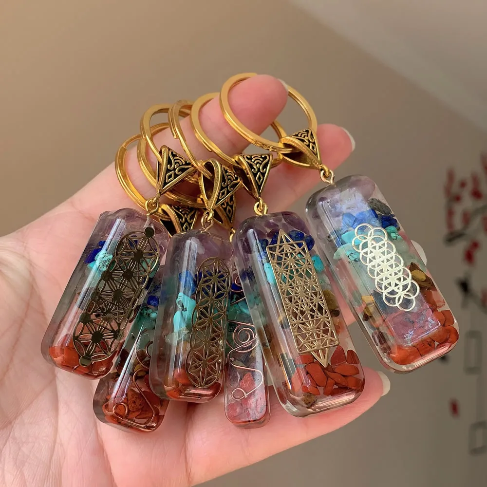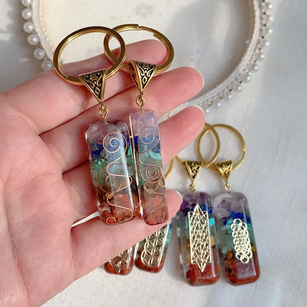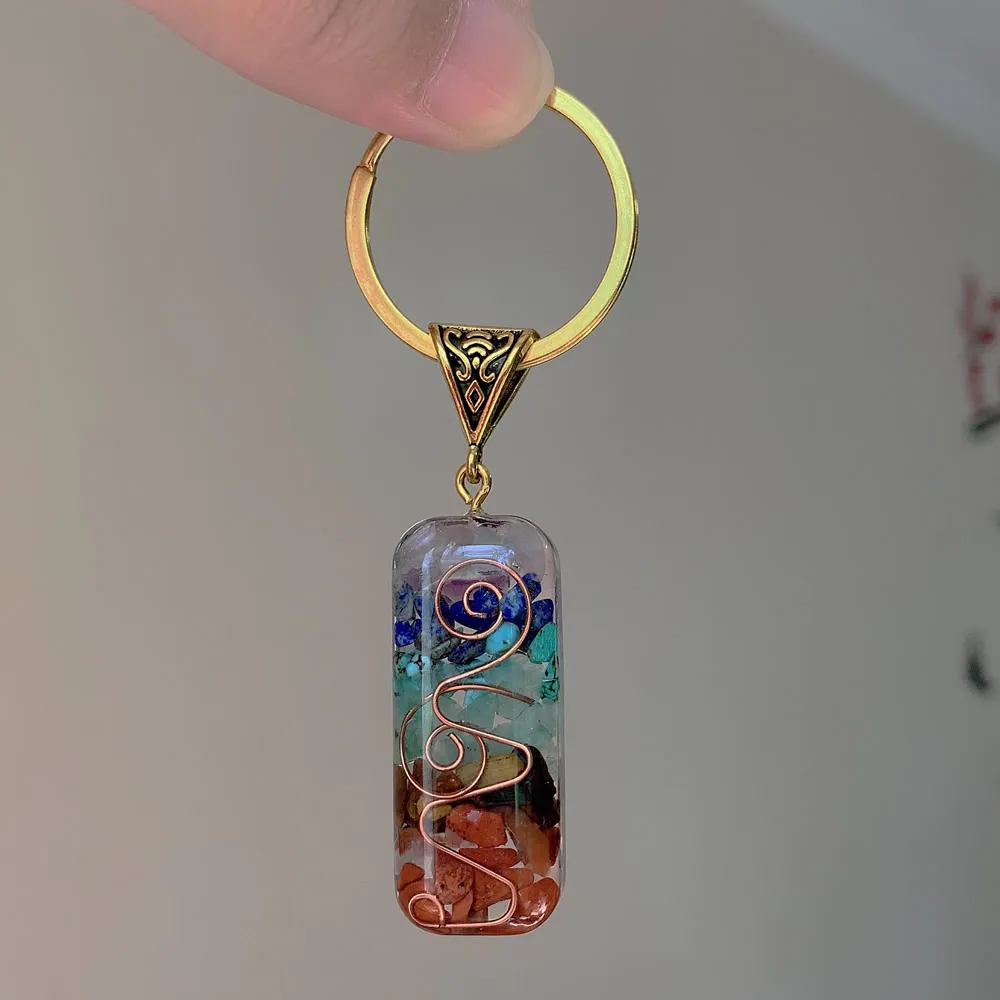 7 Чакр ОРГОН маятник брелок энергия оргонит Кристалл Камень исцеляющий амулет ключ застежка для автомобиля медитация рейки Ом счастливый подарок