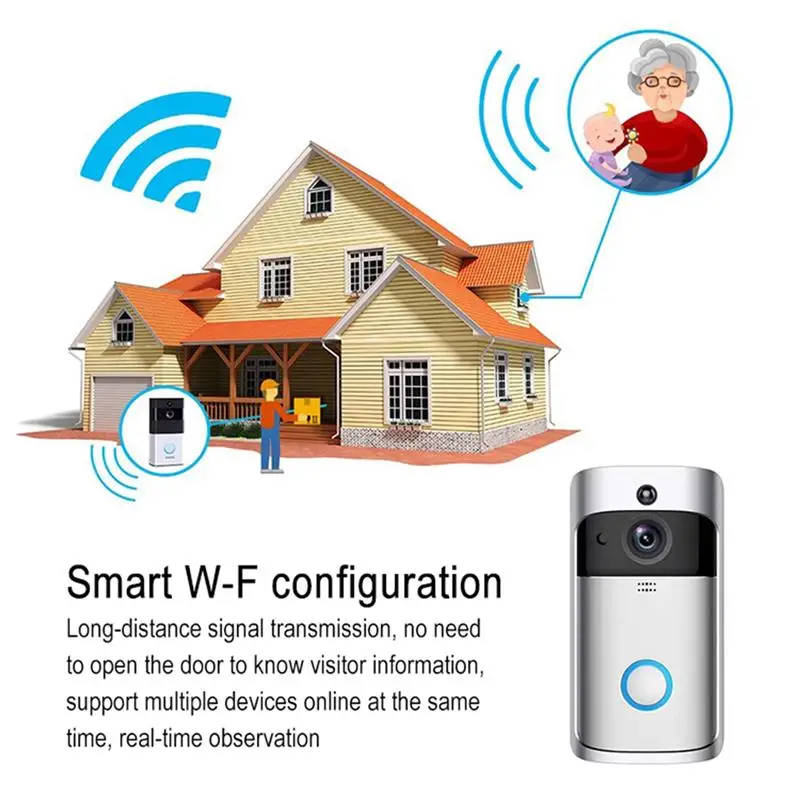 Это не только беспроводной дверной звонок для вас, но и ip-камера безопасности для вашего дома. Многофункциональные функции, которые включают в себя беспроводное, двухстороннее аудио, датчик движения, поддерживает android и ios системы мобильных телефонов.