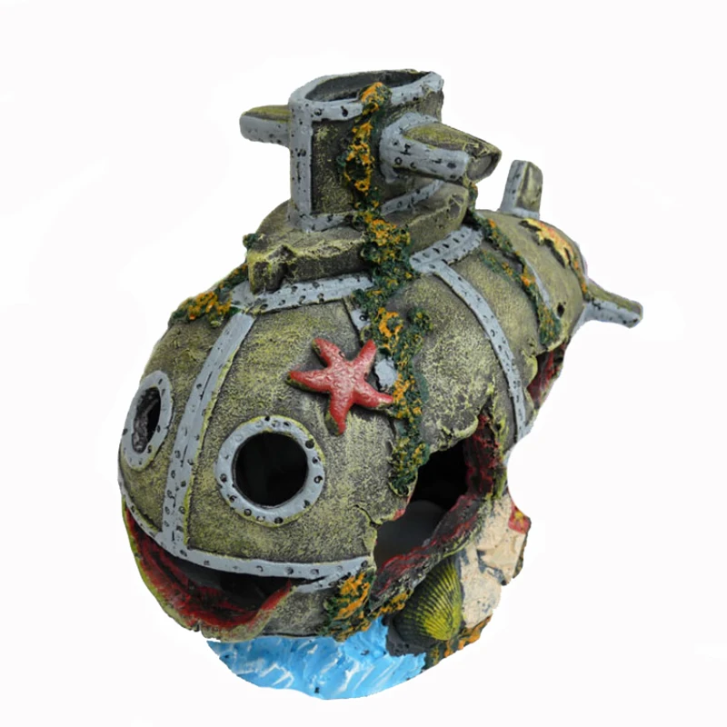 Статуя подводной лодки из смолы, аквариумные украшения, креветки, Гаппи, скрытые пещеры, аксессуары для ландшафтного дизайна, для аквариума, украшения для аквариума