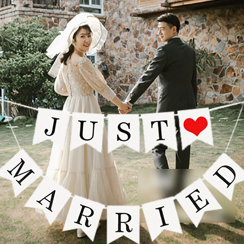 Новый Винтаж Свадебные гирлянды из флагов для молодоженов, Photo Booth Реквизит Свадебная фотосессия баннер вечерние свадебные декорации на свадьбу, вечеринку баннер, флаг