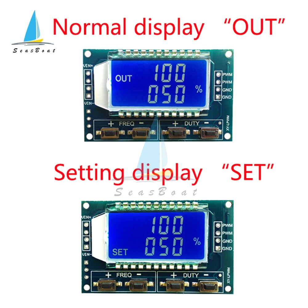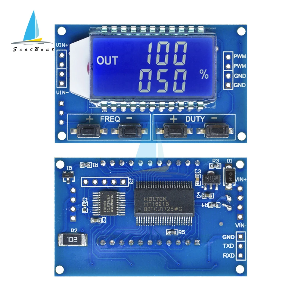 Модуль имеет четыре независимых клавиши, используемые для настройки частоты и рабочего цикла, поддержка касания (увеличение или уменьшение блока) и длительное нажатие (быстрое увеличение или уменьшение), установка параметров автоматически сохраняет, выключение питания не теряется.