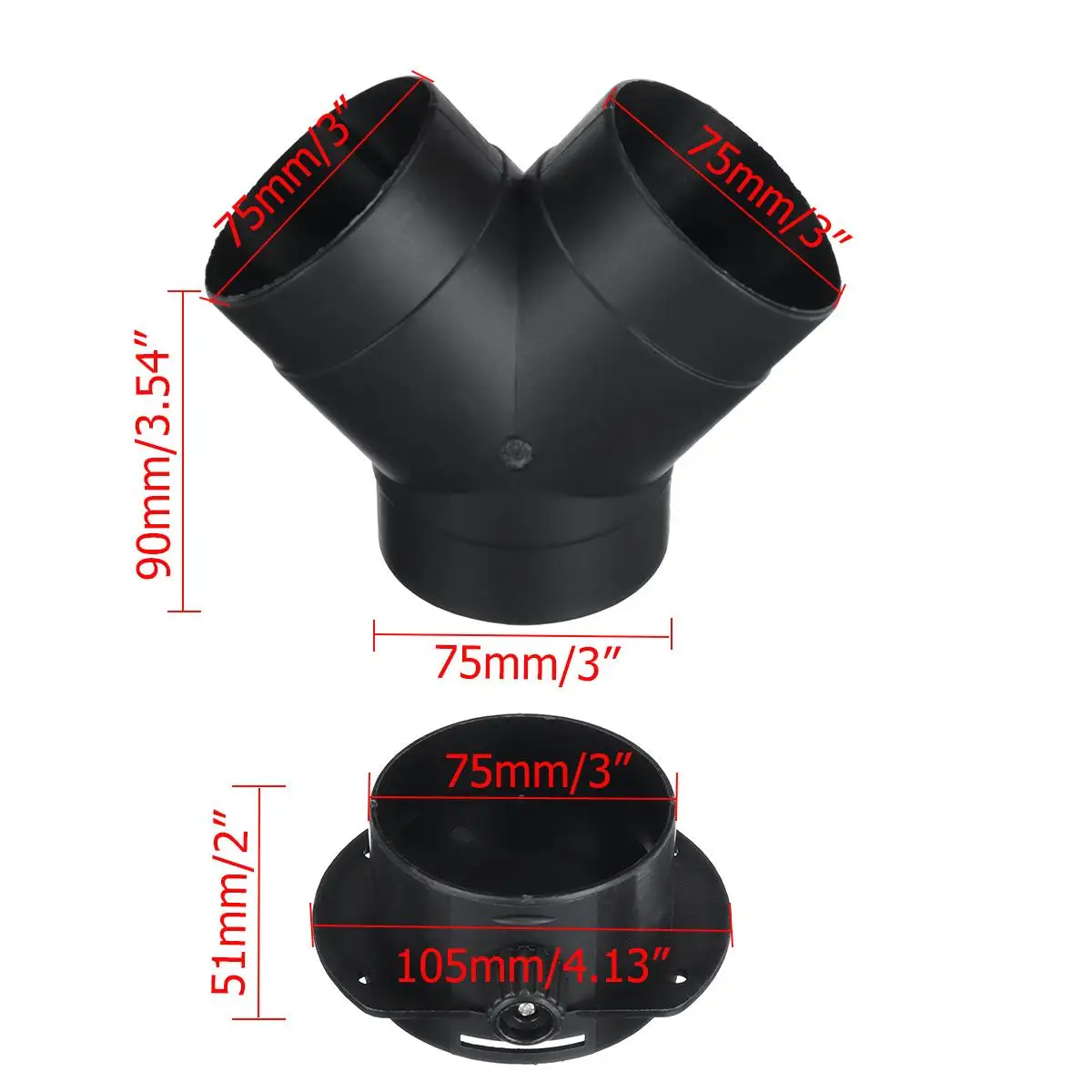 75 мм воздуховод Y ветка розетка разъем для Webasto воздуха дизельного парковочного нагревателя Спецификация: С помощью этого элемента вы можете контролировать, какая сторона «Y» получает горячий воздух Вы также можете позволить одной стороне получить больше горячего воздуха, чем другой или нет (вы можете закрыть одну сторону в общей сложности)