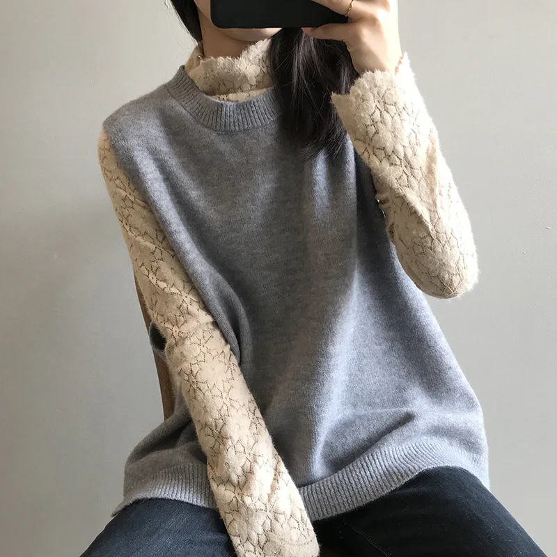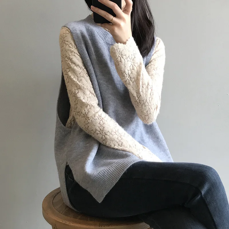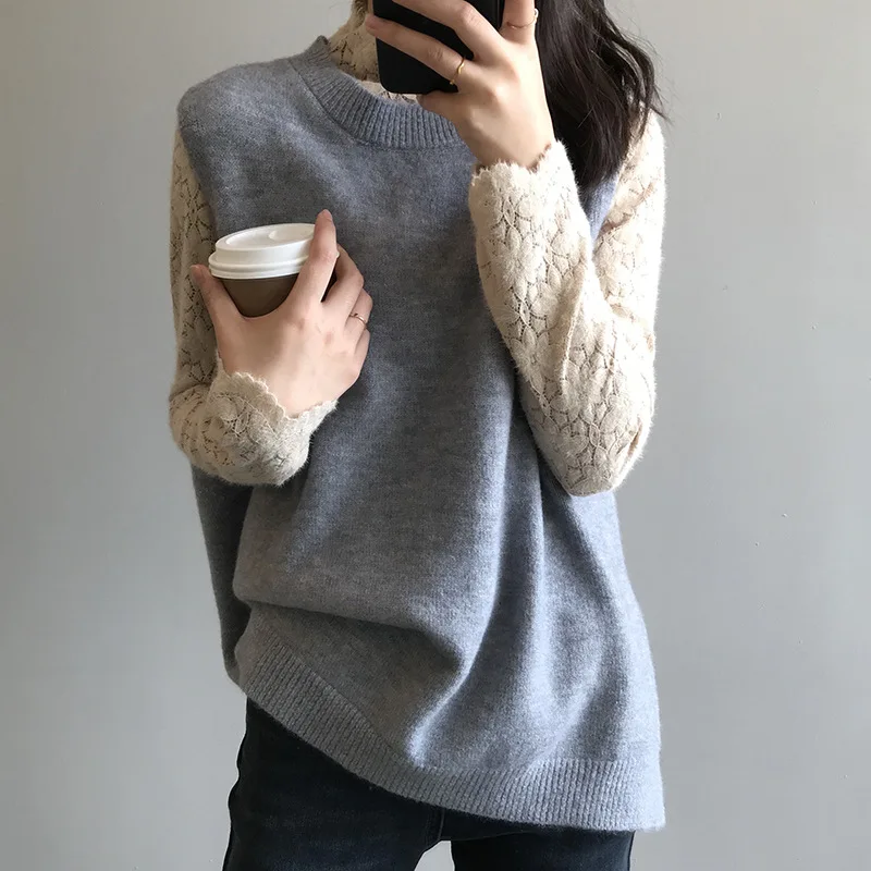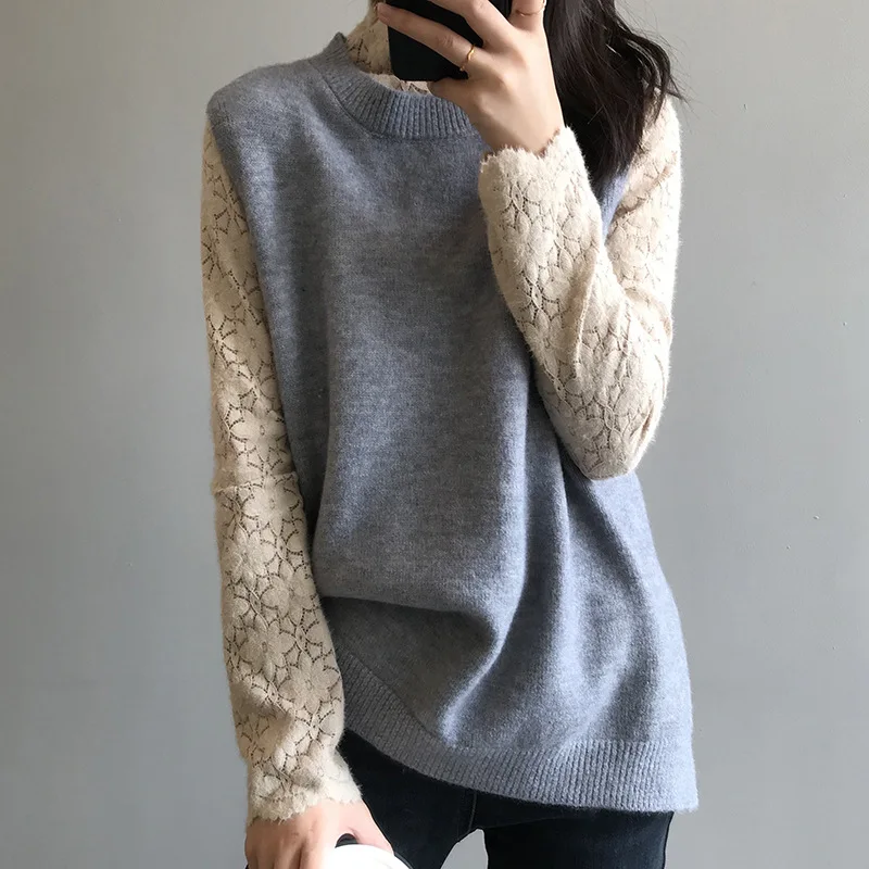 Женский кружевной свитер с рукавами-фонариками Однотонный длинными из гипюра