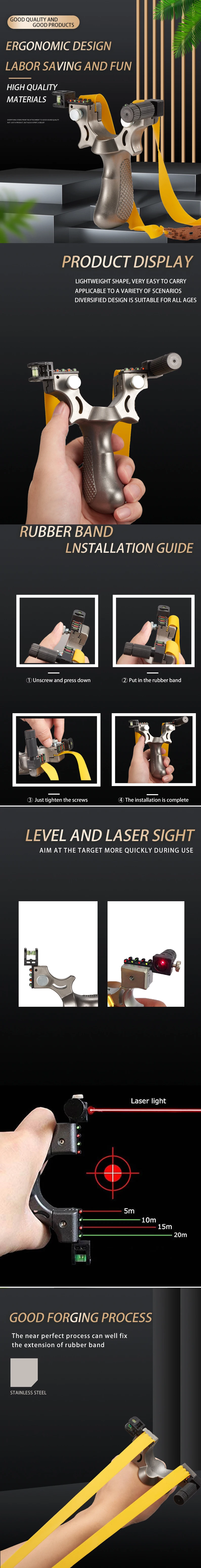 Рогатка оснащена 1 шт. 1 мм толстыми плоскими ремнями для высокой прочности. Плоская резиновая лента для быстрого изменения. Легкая оправа используется для длительного использования без усталости.