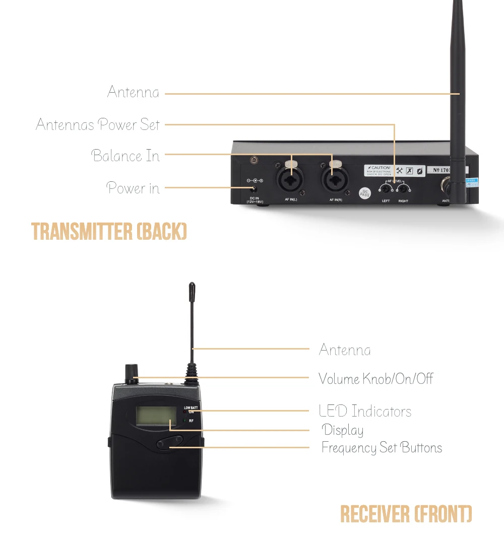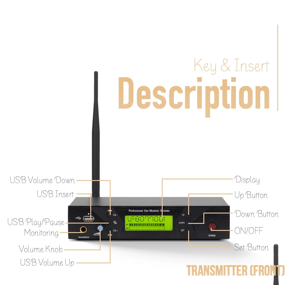 Высокое качество и дизайн:Металлическая конструкция для базового блока передатчика. ЖК-панель обеспечивает детали системы, включая канал. Простая настройка с непрерывной частотой для оптимизации звука для этой персональной системы монитора. Наушники хорошего качества обеспечивают более чистый звук и повышенную производительность для студийного и сценического монитора.