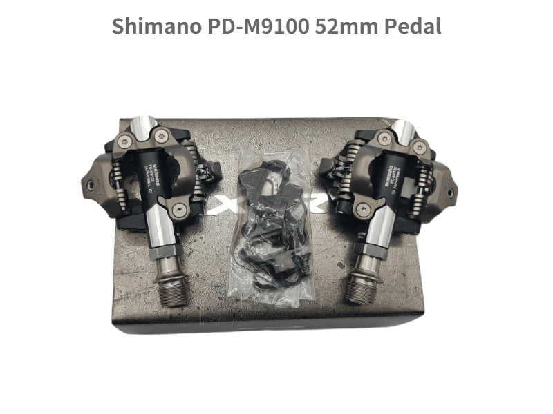 Педали Shimano XTR PD-M9100 повышают стабильность всадника благодаря более широким контактным зонам от края до края, улучшая при этом выпадение грязи через закругленные контактные точки и привязки от внешнего комплекта. Shimano's Rider-Tuned design предлагает два варианта длины осей, включая новую 3 мм более короткую ось, чтобы минимизировать Q-factor для гонщиков XC, которые бегут повышающие подъездные поезда.