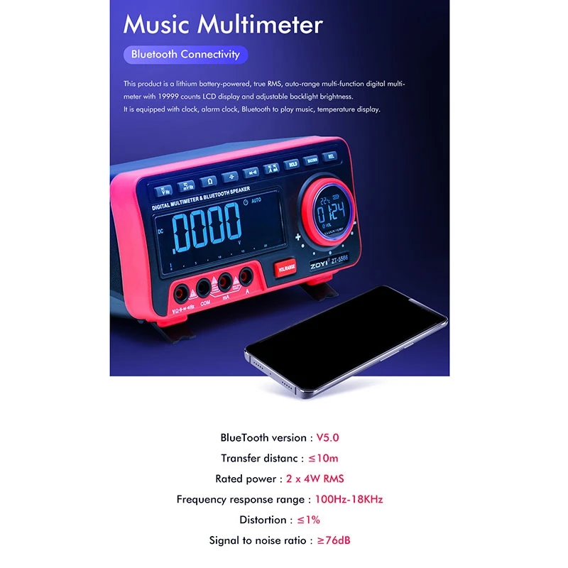 1. Цифровой мультиметр и динамик BT, воспроизведение музыки путем подключения BlueTooth.