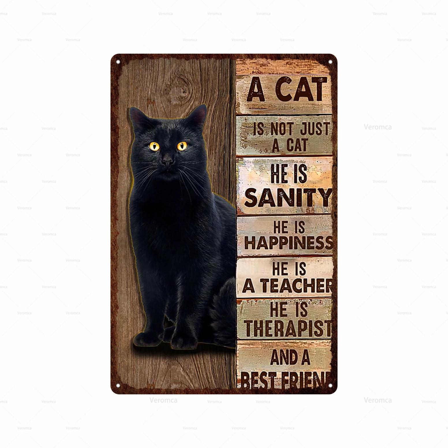 Металлический постер с забавной черной кошкой настенная табличка животными